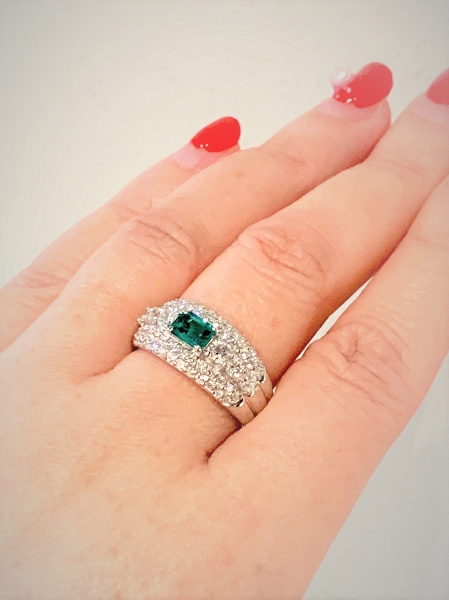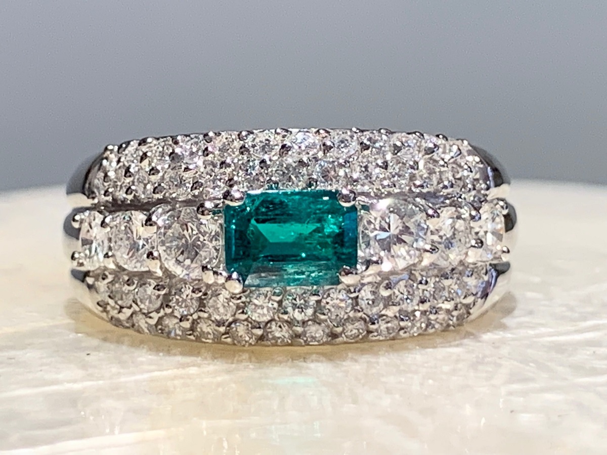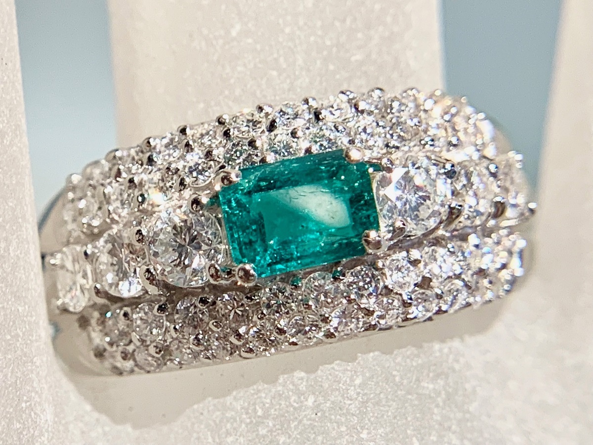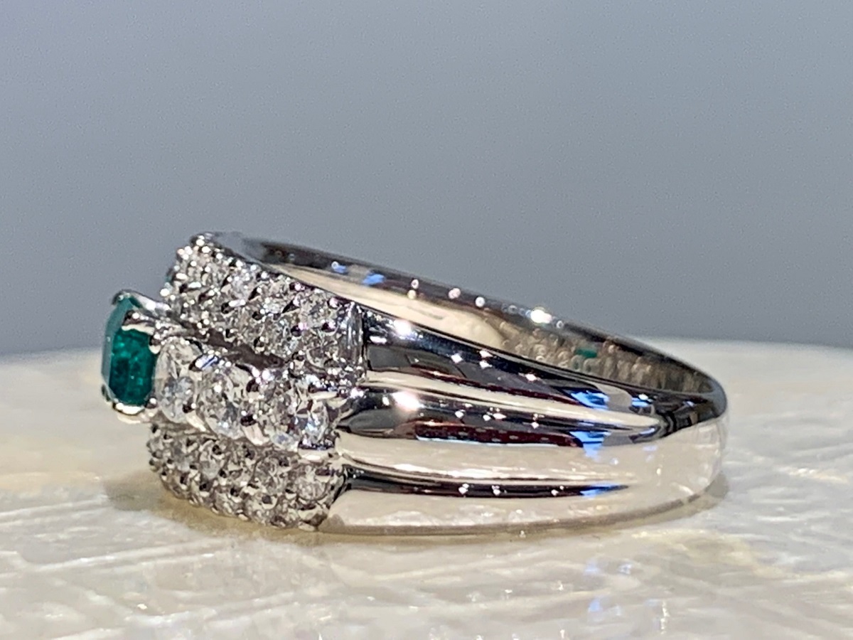 美しい色味のエメラルドとゴージャスなダイヤモンドのリング 幅広でボリューム感もあります 透明感が高く、内包物の少ないメレダイヤがセットされています ご質問は遠慮なくどうぞ 刻 印:pt900、E0.41、090 材 質:プラチナ 宝 石:エメラルド0.41ctダイヤモンド0.90ct カラー:無色系 形 状:ラウンド 重 量:約7.7g サイズ:14.5号(幅広のため14号位の方に合うかと思います) 幅 :約9.2mm~4.0mm 厚 み:約5mmエメラルド部分 付属品:なし <商品の状態ランク:Used品 A > N:新品 NA:新品同様 A:綺麗なお品 B:少し使用感のあるお品 C:使用感のあるお品 (基準はお客様の立場に立ち厳しく判断しておりますが、Used品が主ですのでご了承の上入札をお願い致します。基本的には使用感の少ない美品、または新品仕上げをしたものの出品になります) 【石】エメラルド小さなカケ2か所、表面に傷あり(10倍鏡にて確認) 【枠部分】新品仕上げ済みですが取りきれない微小な傷はご了承ください 洗浄・クリーニング済み ◆トラブル防止の為、完全な状態を求める方や神経質な方は、申し訳ございませんが入札はお控え下さい、USED品とのご理解の上で入札をお願いします ◆お使いの環境により実際のお色味と異なる場合がございます、ご了承ください ◆当方が鑑定し本物の基準を満たした商品のみを出品しています <お取り引きについて> ※消費税は全て含まれた価格となっております ※落札から5日以内のご入金をお願いいたします 5日経ちましてもご入金がない場合は、落札者様都合のキャンセルとさせていただきます ※高額商品の場合にはカードの不正利用を防止し皆様に安心してお買い物をして頂くため、カードの有効性を確認させて頂いております 商品の発送に最長5営業日程度頂く場合がございますので予めご了承下さいませ ※商品に問題がある場合を除き、返品・交換はお受けしておりません ※[配送時の紛失、破損]30万円以内の商品についてはおてがる配送(ヤマト運輸)を利用しております、その為配送トラブルがあった場合にはお客様のほうでお手続きが必要になります こちらをご一読くださいませ https://support.yahoo-net.jp/SccAuctions/s/article/H000008837 ※梱包について、宅急便コンパクト以外は基本リサイクルのダンボールを使用いたします、ご了承ください ※プレゼント用ラッピングのご希望があれば対応いたします、お気軽にお申し付けください 販売業者 ジュエリーリマーニ 営業時間 12:00~18:00(定休日:月曜日及び日曜祝日) メールアドレス rie-t@jewelry-rimani.com ホームページ https://jewelry-rimani.com 古物許可番号 307731208486 | |