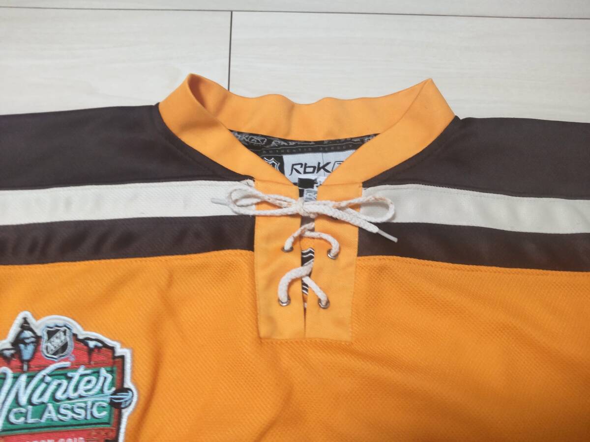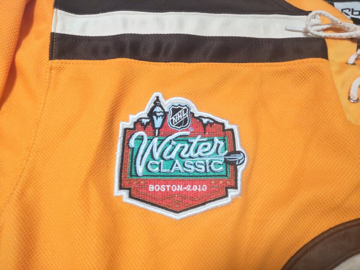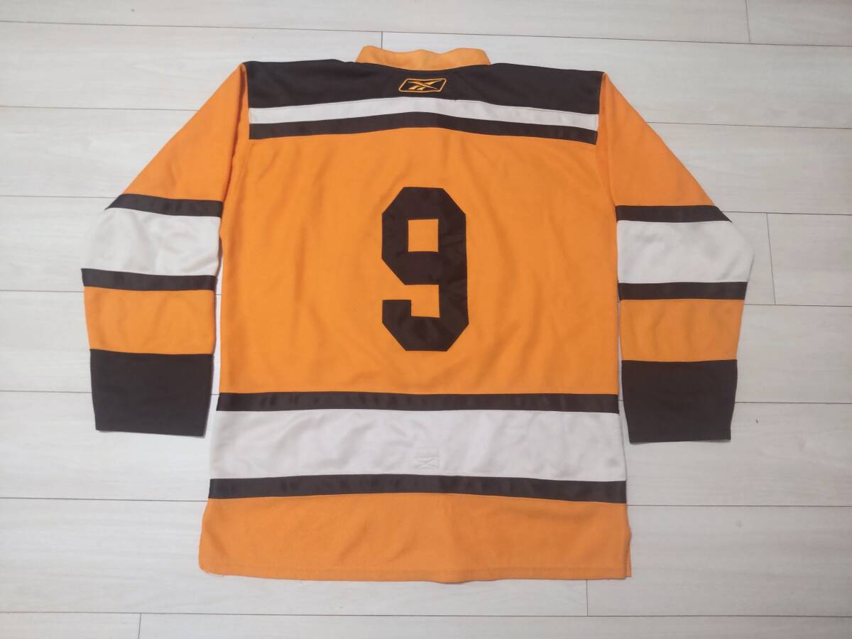 REEBOK(リーボック)社のアイスホッケージャージ(ユニフォーム)です ■NHL Boston Bruins(ボストン・ブルーインズ)のものです ■オーセンティックモデルになります ■サイズは52になります 素人採寸ですか 身幅(脇の下で)63cm 着丈(背面側で)78cm 裄丈87cm ありました ■カナダ製です ■正面にはブルーインズのエンブレムのワッペンが付いております ■右胸にはNHLのWinter CLASSICのワッペンが付いております ■ユーズドになりますので使用感があります いくつか特筆すべき点があります 1.全体的に細かな擦れがあります(一部は写真8.9枚目をご参照下さい)2.正面の「B」マークに汚れがあります(写真6枚目をご参照下さい)3.首元編み上げ部のレースに汚れと金属部に錆があります(写真10枚目をご参照下さい)■NHLのファンの方いかがでしょうか 是非よろしくお願い致します
