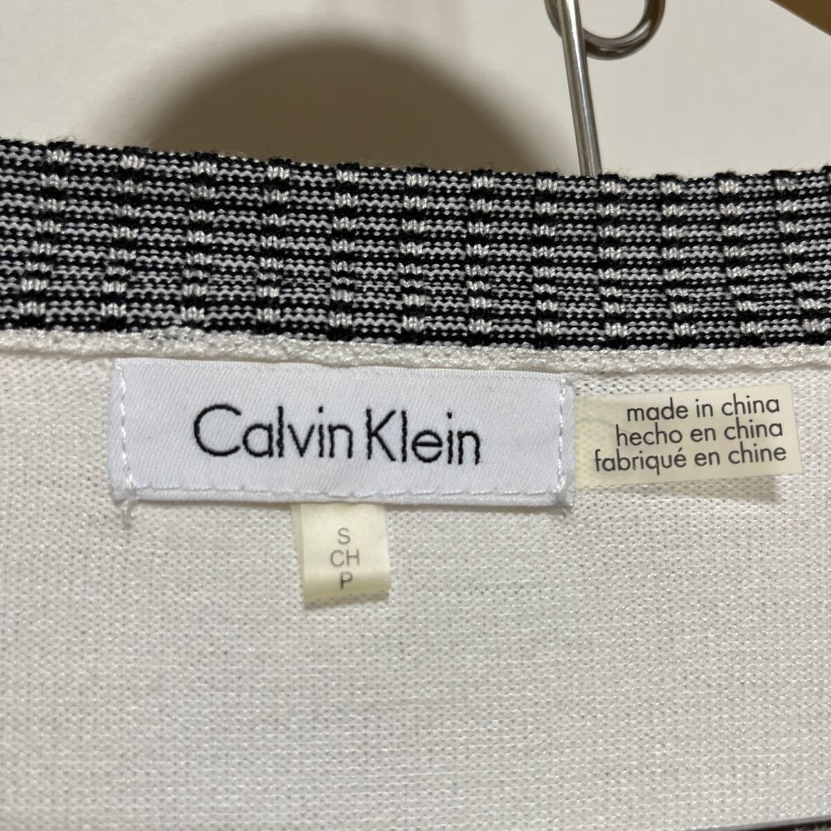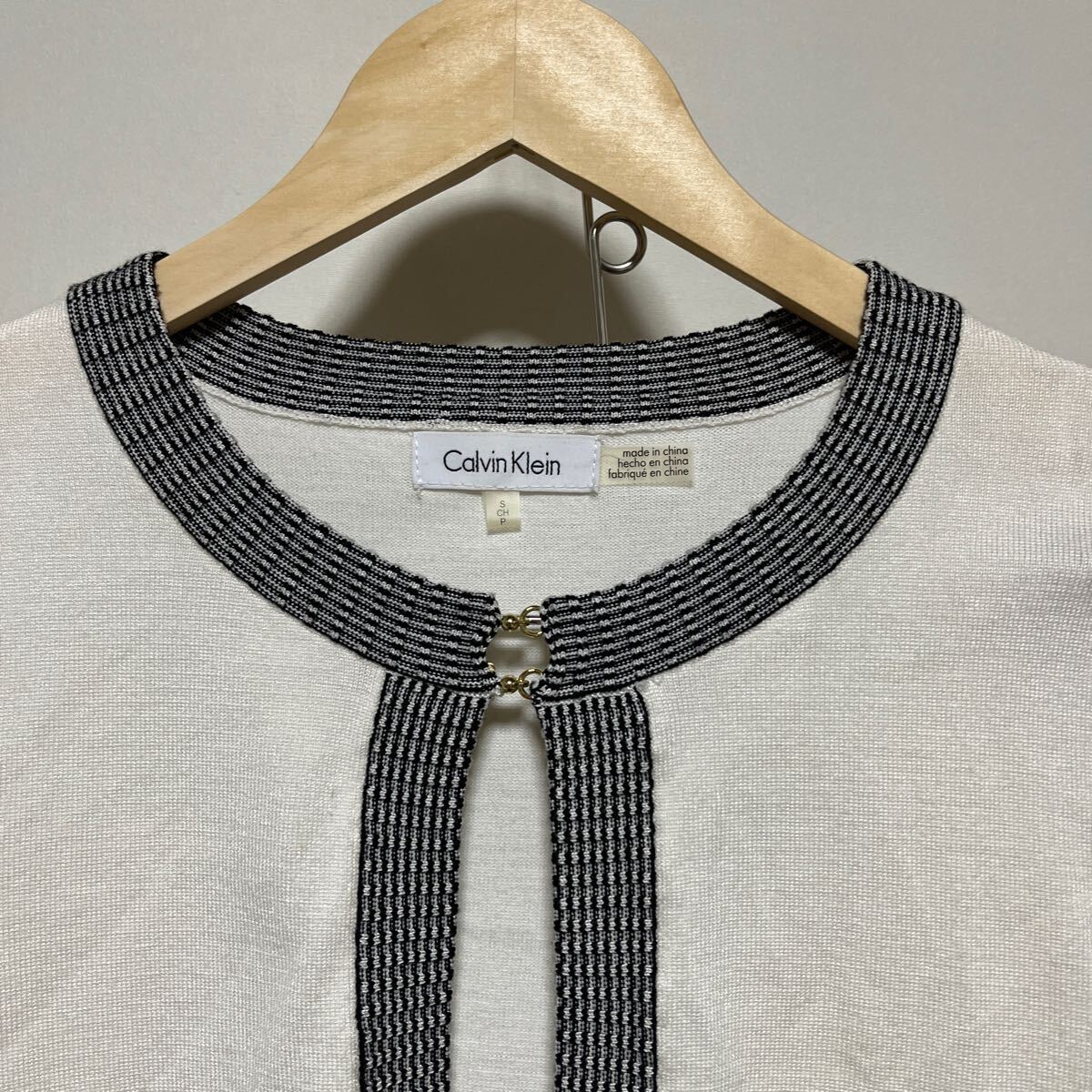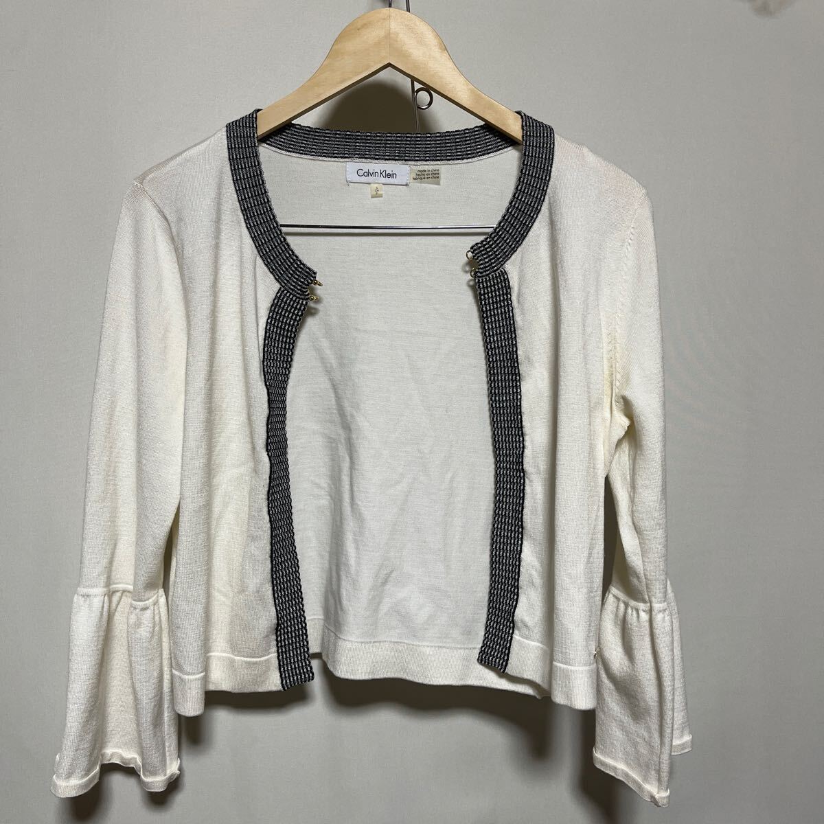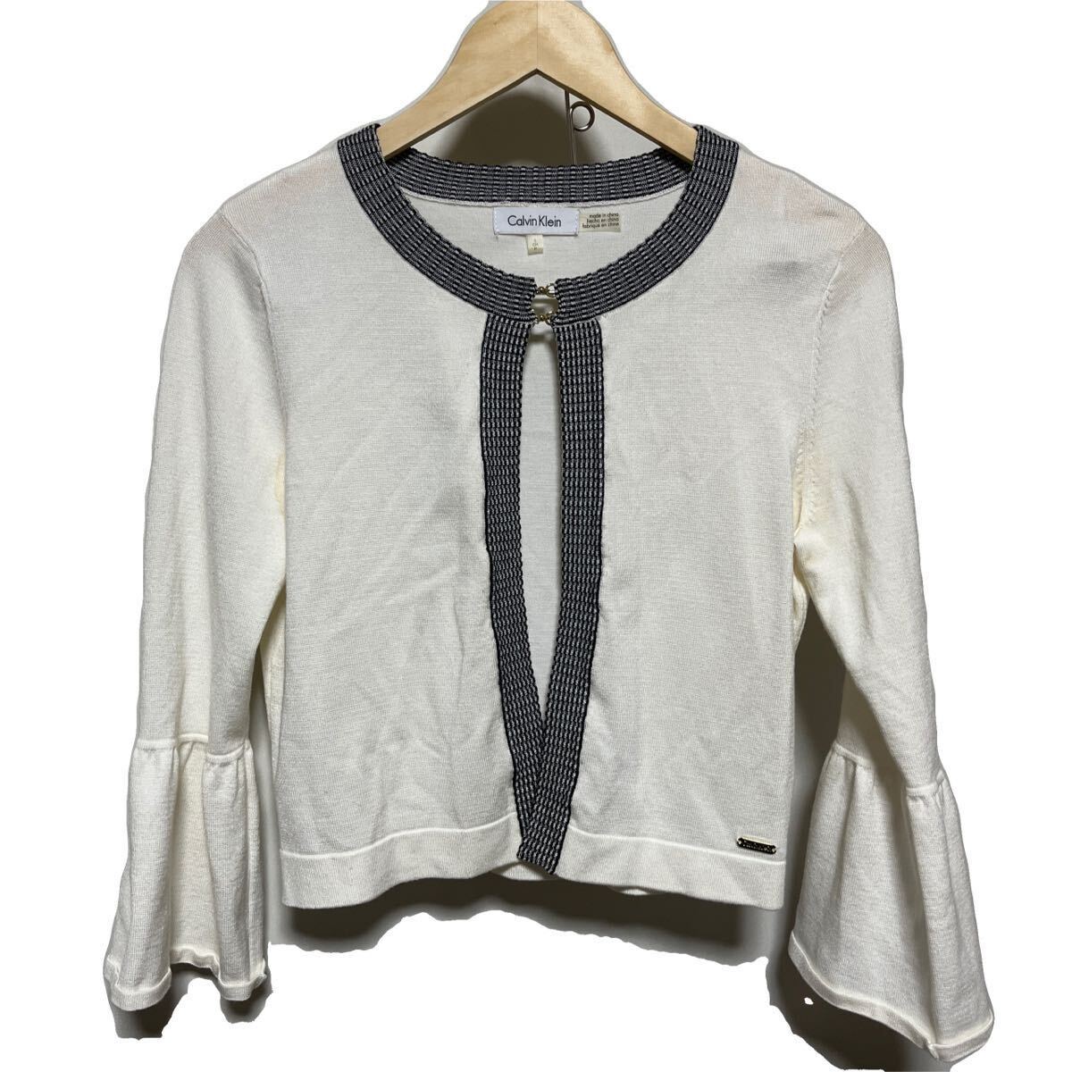 FA43hh【Calvin Klein|カルバンクライン】サイズ S ホワイト ニット カーディガン レディース ショート丈