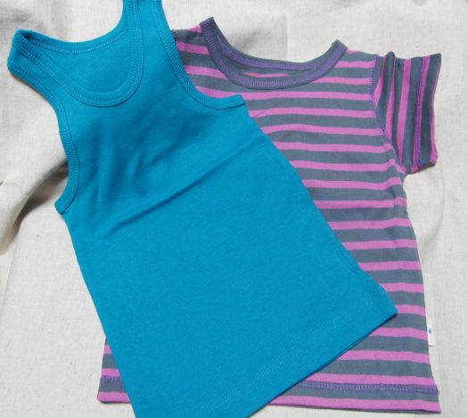 ピンクとグレーのボーダーTシャツと、きれい色ブルーのタンクトップの2枚セットです。