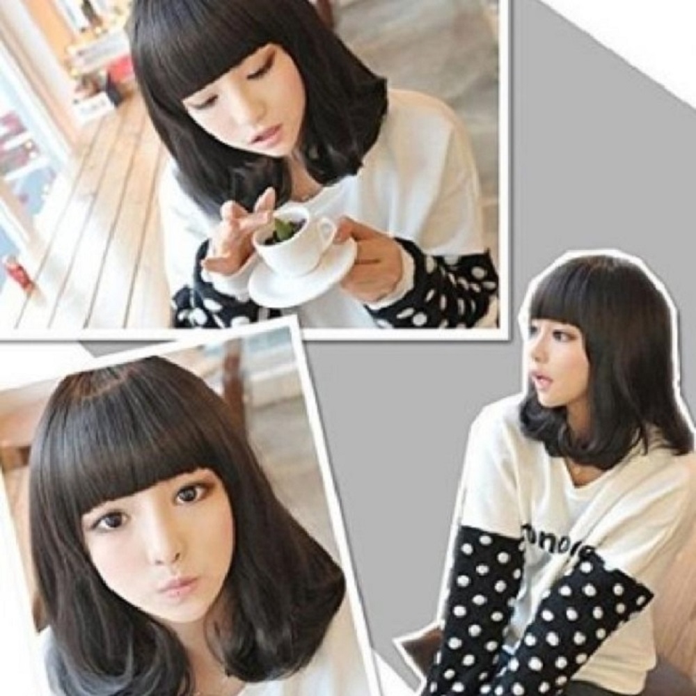| 【送料無料】『ブラック』 サラツヤ ぱっつん ウィッグ ミディアム 付け毛 ファッション レディース かつら 耐熱 黒髪 コスプレ | |||