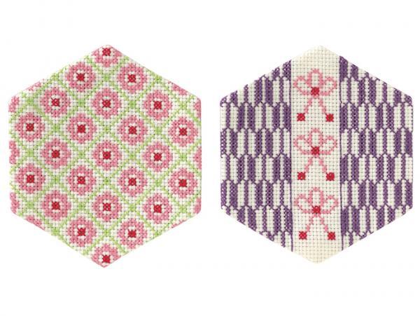 ◆清らかな和模様のコースター◆キット◆おはじき花・花結びと矢羽根◆クロスステッチ◆刺繍◆刺しゅう
