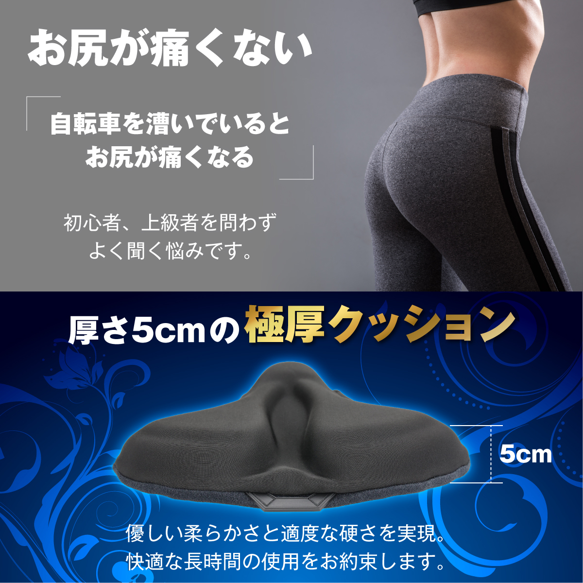 などの自転車の悩みを解決!座り心地を優しくサポートし、お尻への負担を和らげます。