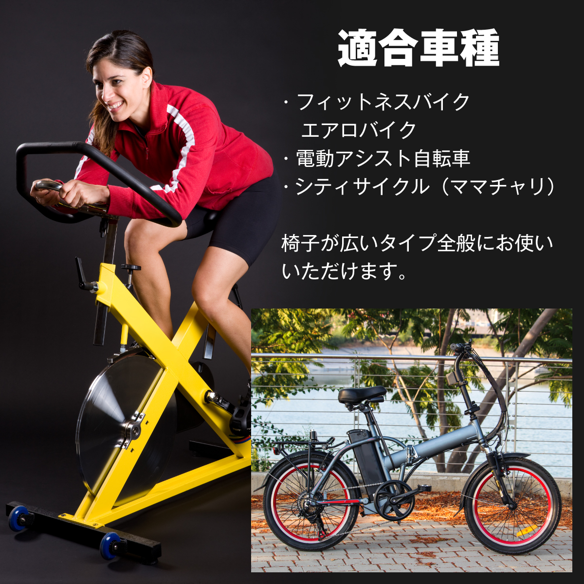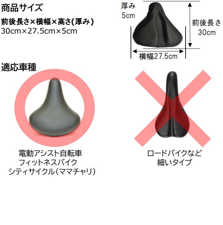 ・一般的なシティサイクルの他、フィットネスバイク・エアロバイク・電動アシスト付き自転車など幅広タイプのサドル用です。