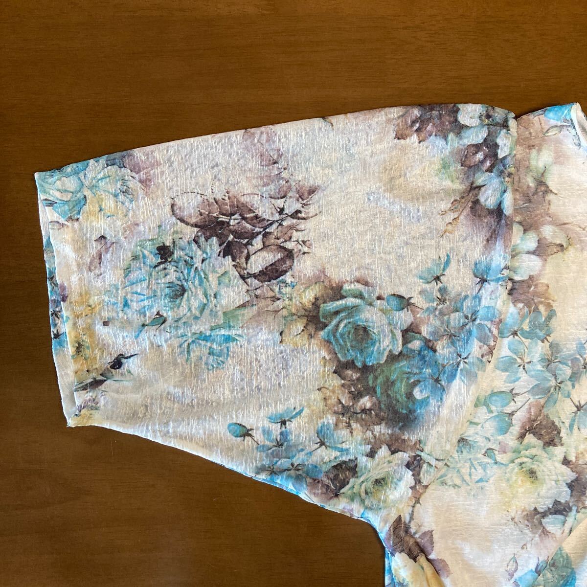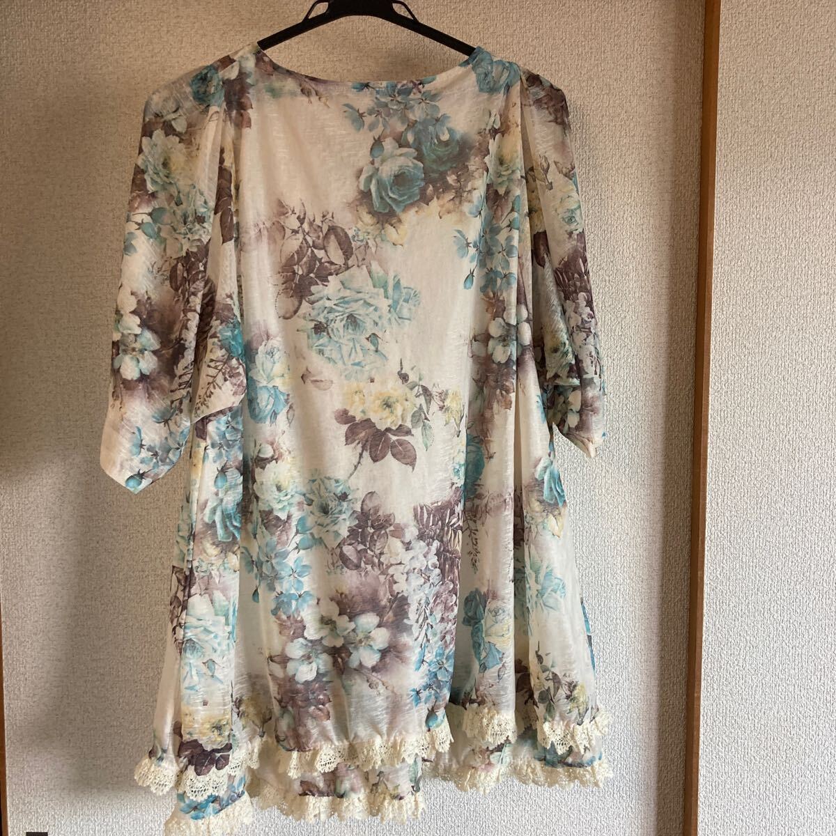 サイズ:肩幅 34cm、身幅 60cm、袖丈 37cm、着丈 75cm、袖口幅 20cm(平置き、素人採寸です)
