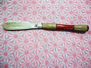 取っ手尻をテーパーを付太くしてあるので,小指にあたり握りやすくなっている。(写真参考)