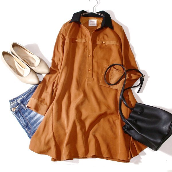 美品 アーバンリサーチ SENSE OF PLACE 大人可愛い バイカラー 柔らかワンピース F 春 秋 合服 24C05