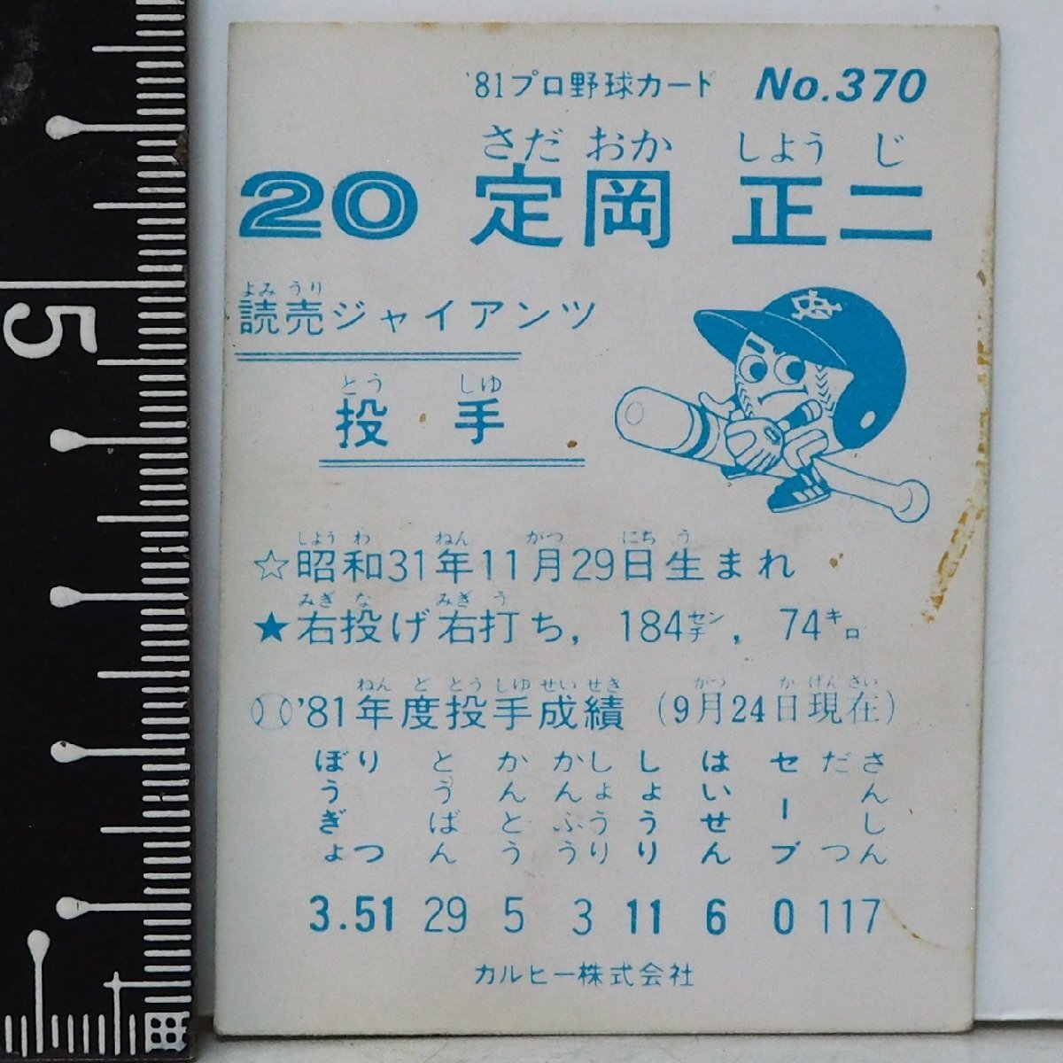 81年 カルビー プロ野球カード No.370【定岡 正二 投手 読売ジャイアンツ 巨人】昭和56年 1981年 Calbee おまけ 食玩【中古】送料込