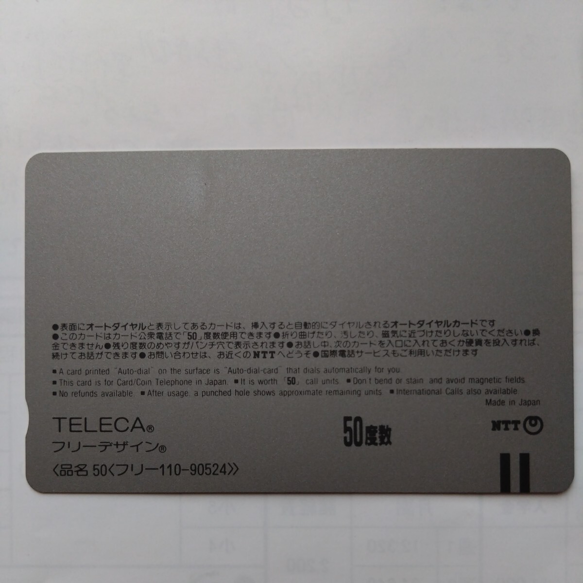 テレホンカード 未使用 50度数です。状態良好ですが、光にかざすとごく少しわかる程度の薄い傷が見られます。