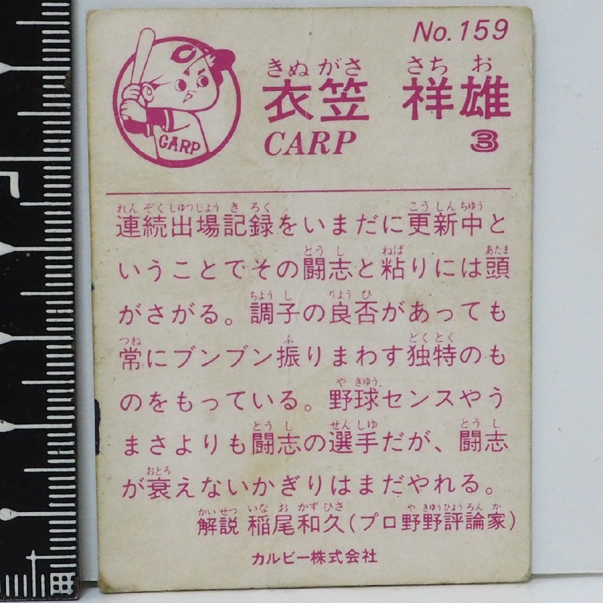 83年 カルビー プロ野球カード No.159【衣笠 祥雄 広島東洋カープ】昭和58年 1983年 当時物 Calbee おまけ 食玩 BASEBALL【中古】送料込