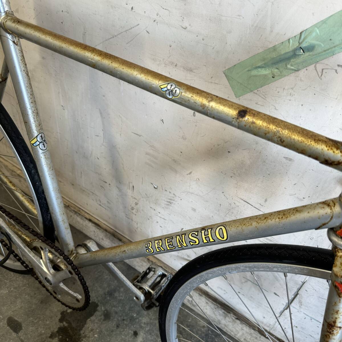(B)□岐阜発 △ 3RENSHO / ピストバイク / 固定ギヤ / ブレーキなし / サドル破れあり / サビ有り / 現状品 R6.5/11□ |
