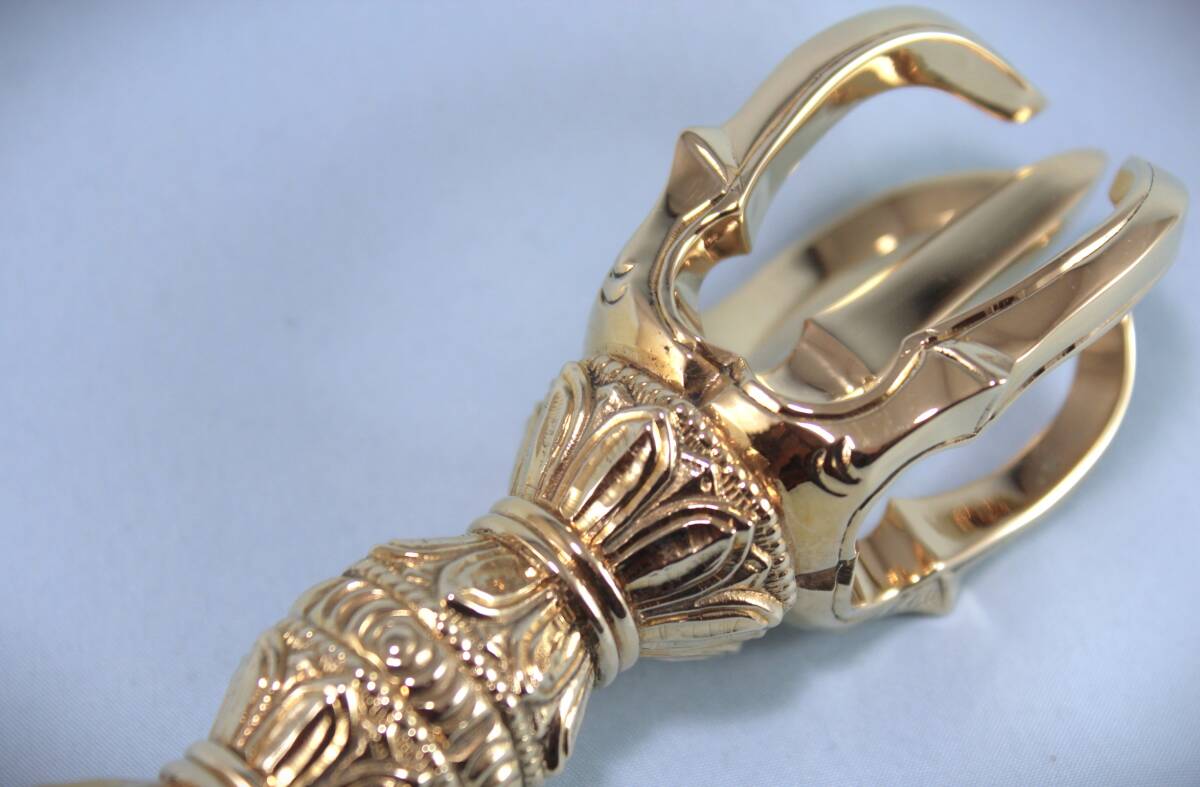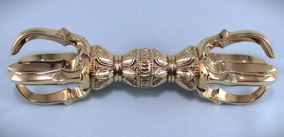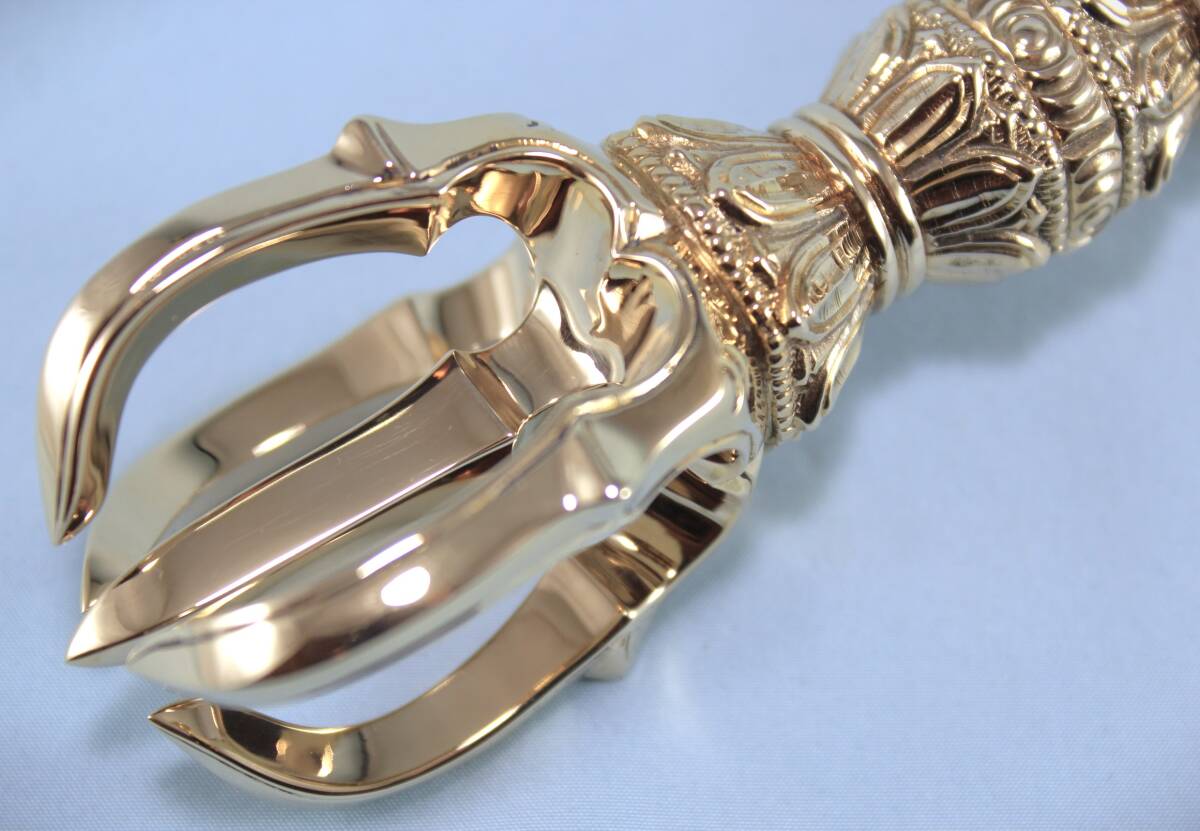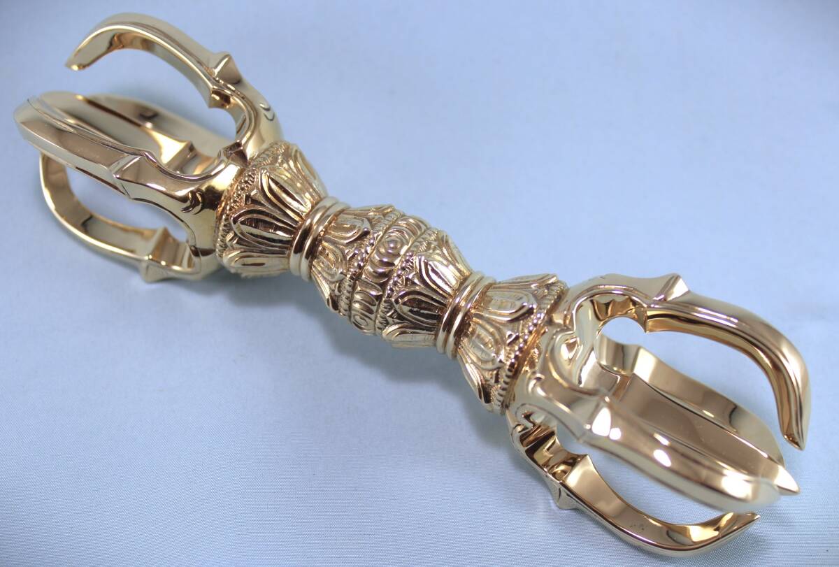 鳴り五鈷杵★5寸150㎜★鋤彫り★密教法具★砂張り(響銅)製★磨き仕上げ★「京美」作