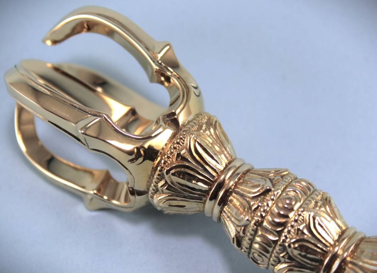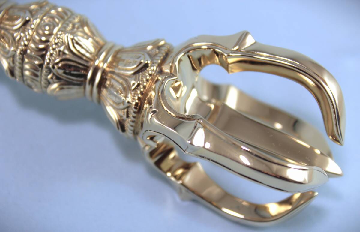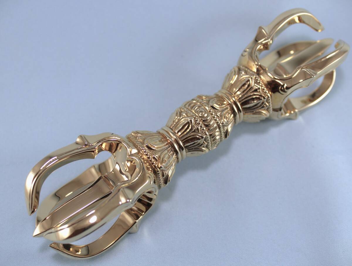 鳴り五鈷杵★5寸150㎜★鋤彫り★密教法具★砂張り(響銅)製★磨き仕上げ★「京美」作