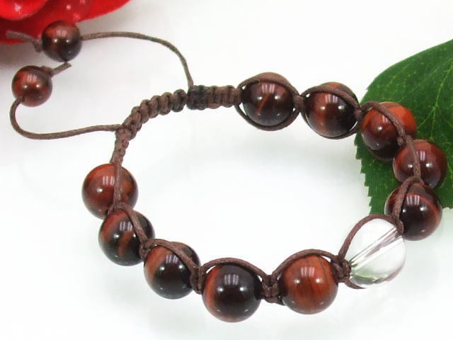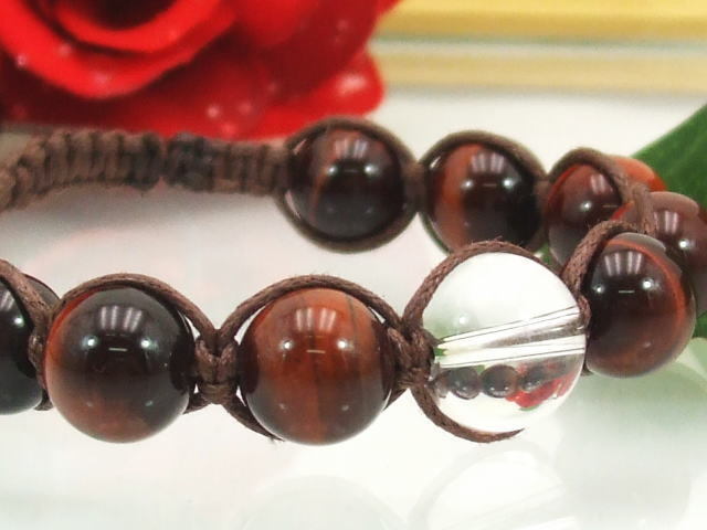 ★☆★ レッドタイガーアイ&水晶 編みこみブレスレット♪ 金運&恋愛運! 男女ともに人気の10ミリ ヘンプ 送料無料(a_r)b