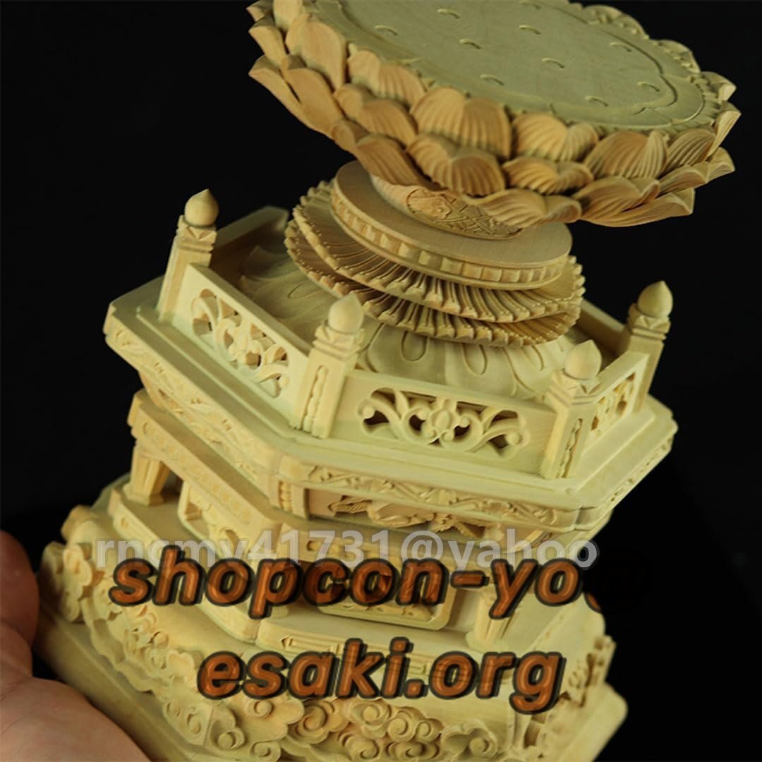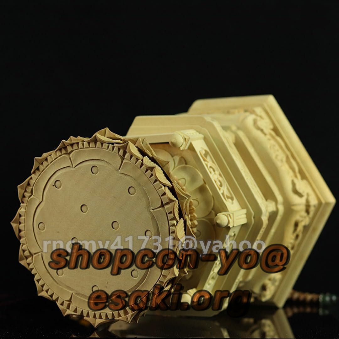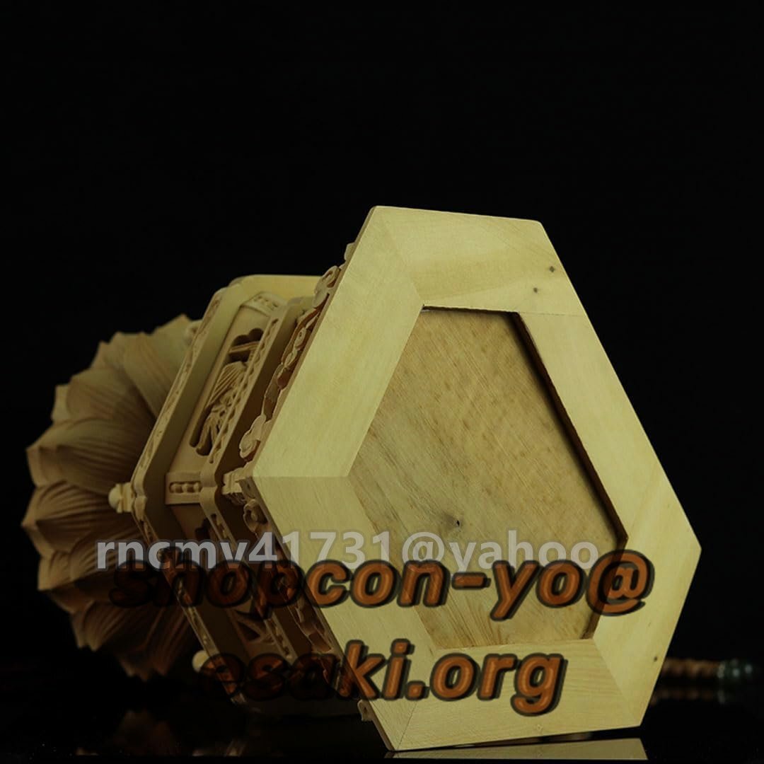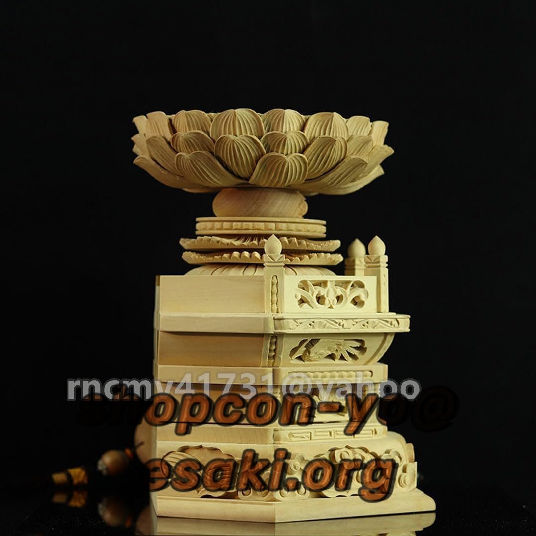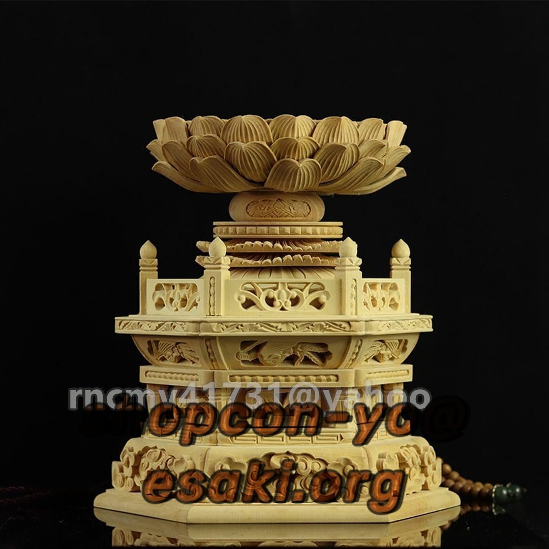 六角仏像台 高級天然ツゲ木彫り ◆仏壇用の仏具・仏像をのせる台・仏像置台・仏台【仏教美術品 木彫り 置物】 (高さ15cm×内径8.5cm)