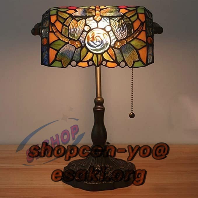 極美品★ LED ステンドグラス テーブルランプ テーブルライト 卓上 ヴィンテージ ランプ 蜻蛉 スタンド ライト 照明
