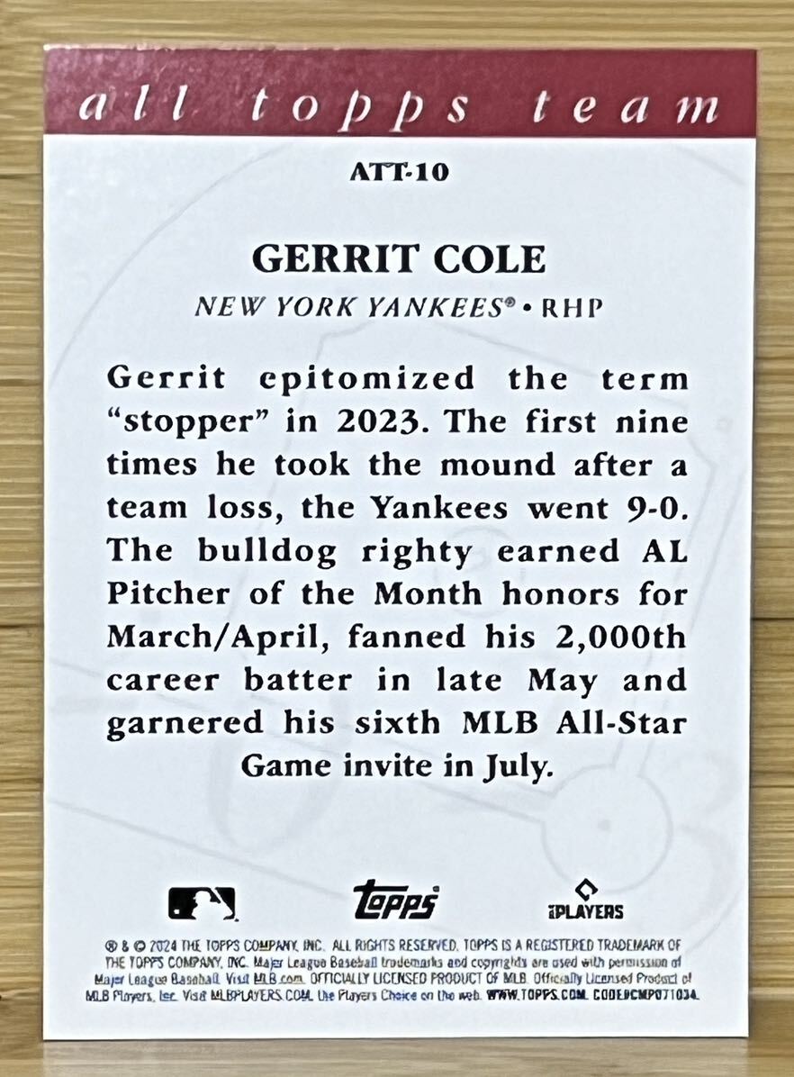 2024 Topps ゲリット・コール Gerrit Cole 2023 All Topps Team #ATT-10