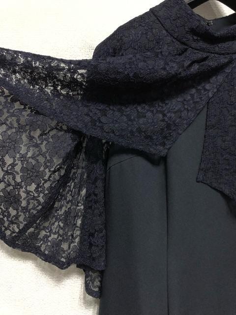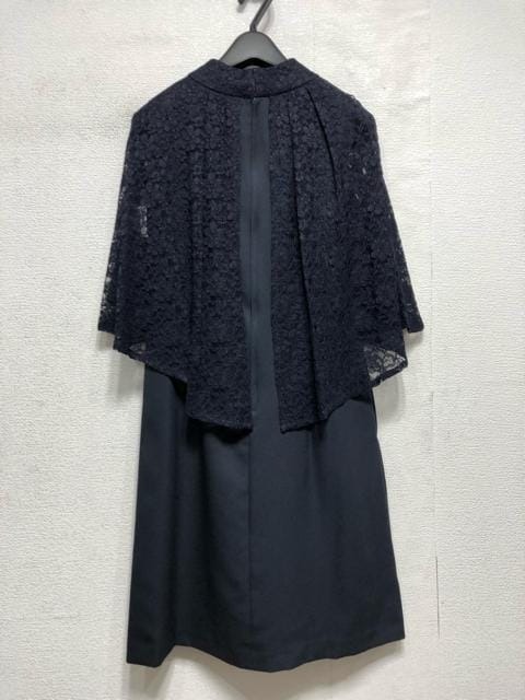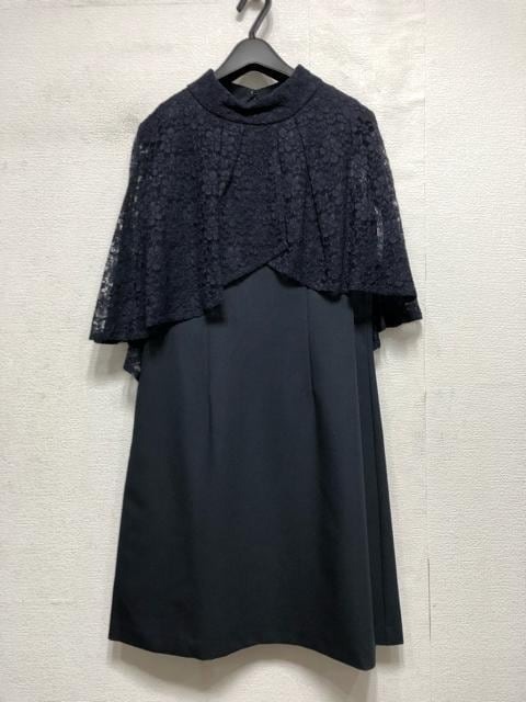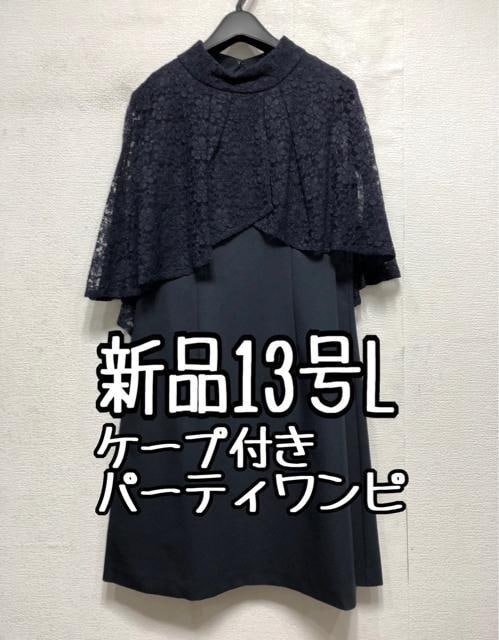 新品☆13号L♪紺系♪レースケープ付パーティーワンピース♪☆a257