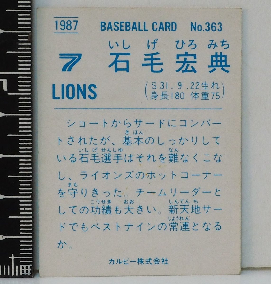 87年 カルビー プロ野球カード No.363金枠【石毛 宏典 西武ライオンズ】昭和62年 1987年 当時物 Calbeeおまけ食玩【中古】