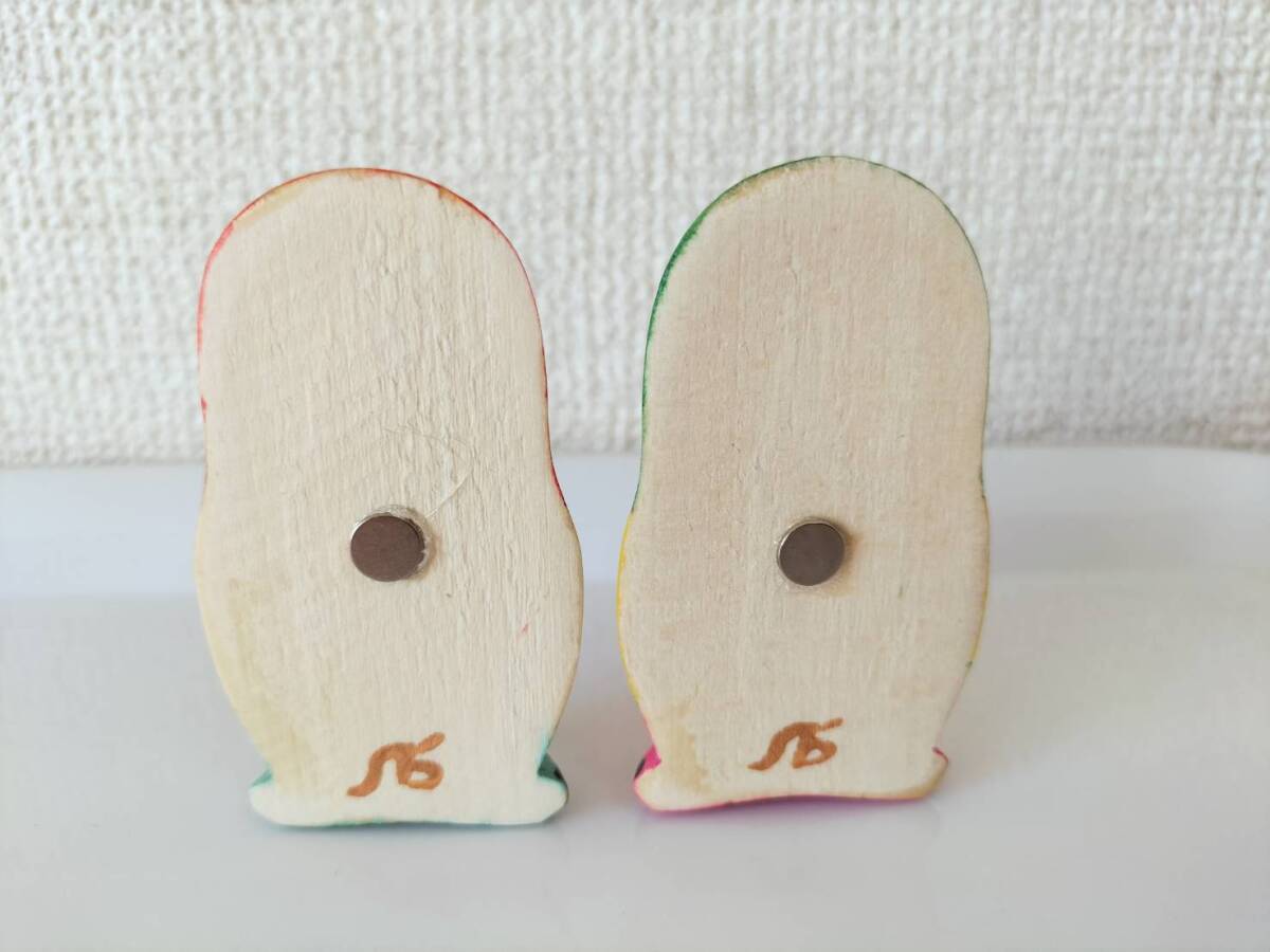2個セット、バラ売り不可です。裏面の磁石は日本製とは異なり磁力は若干弱いですが、冷蔵庫などにくっつきます。