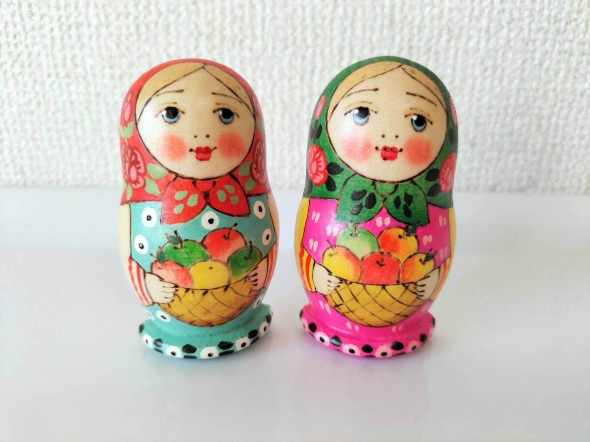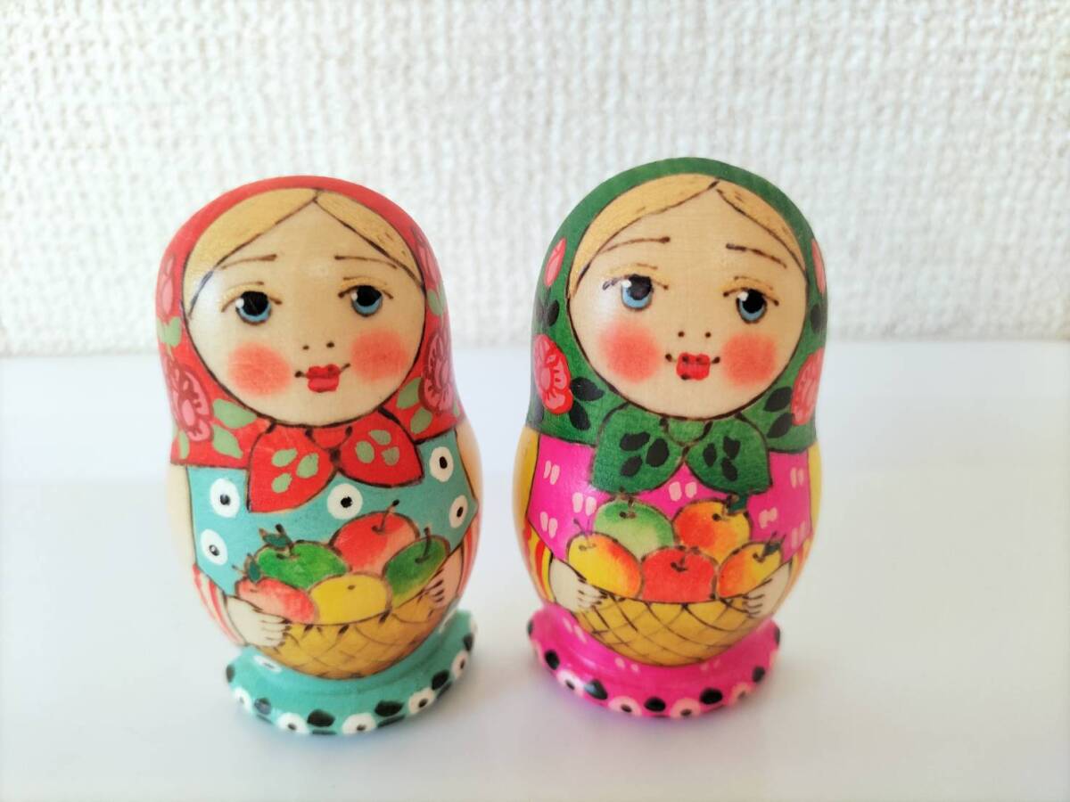 【LYH140】マトリョーシカのマグネット2体セット リューバ作 りんご