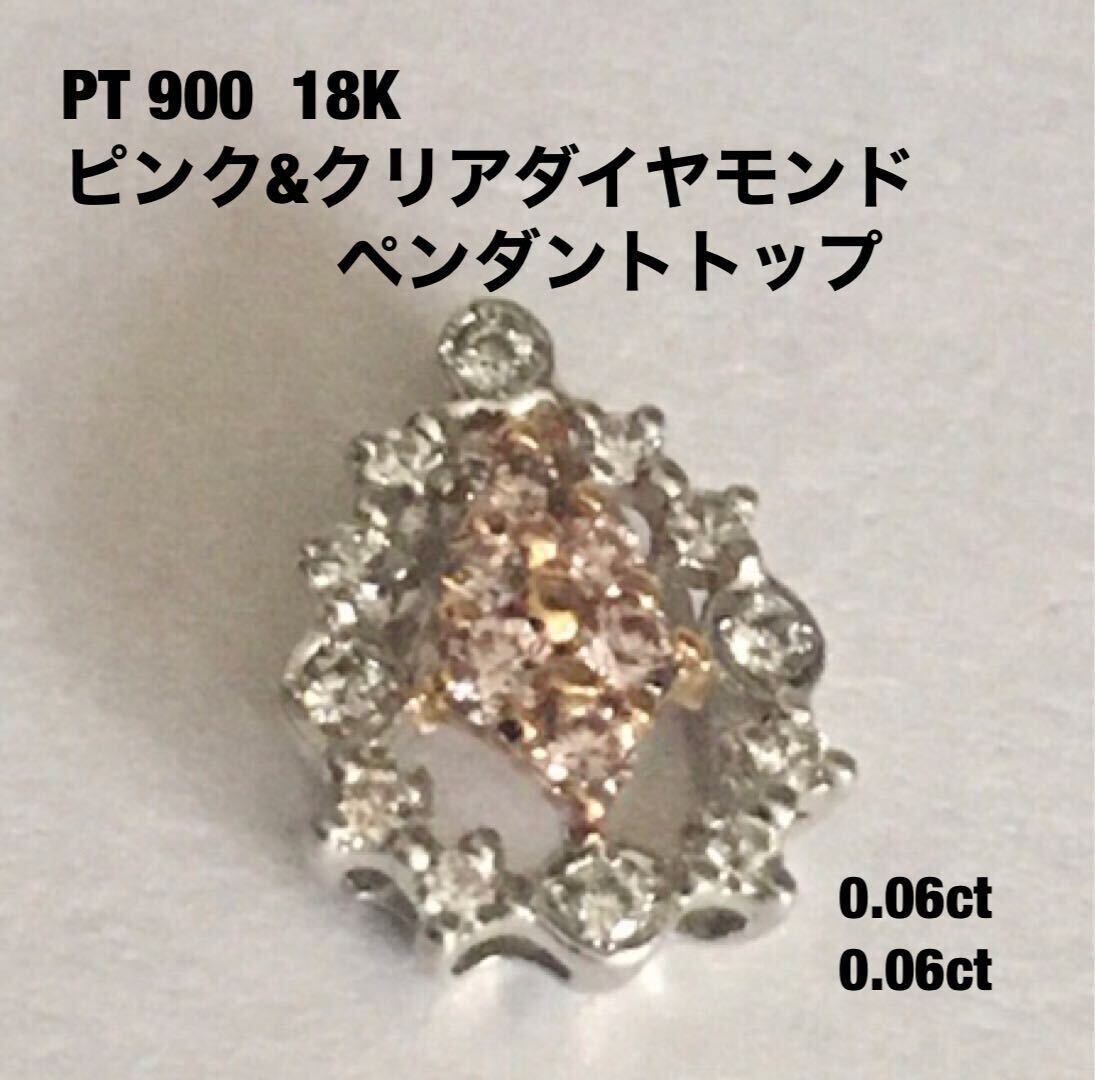 ■PT 900 18Kピンクダイヤ&クリアダイヤモンドペンダントトップ