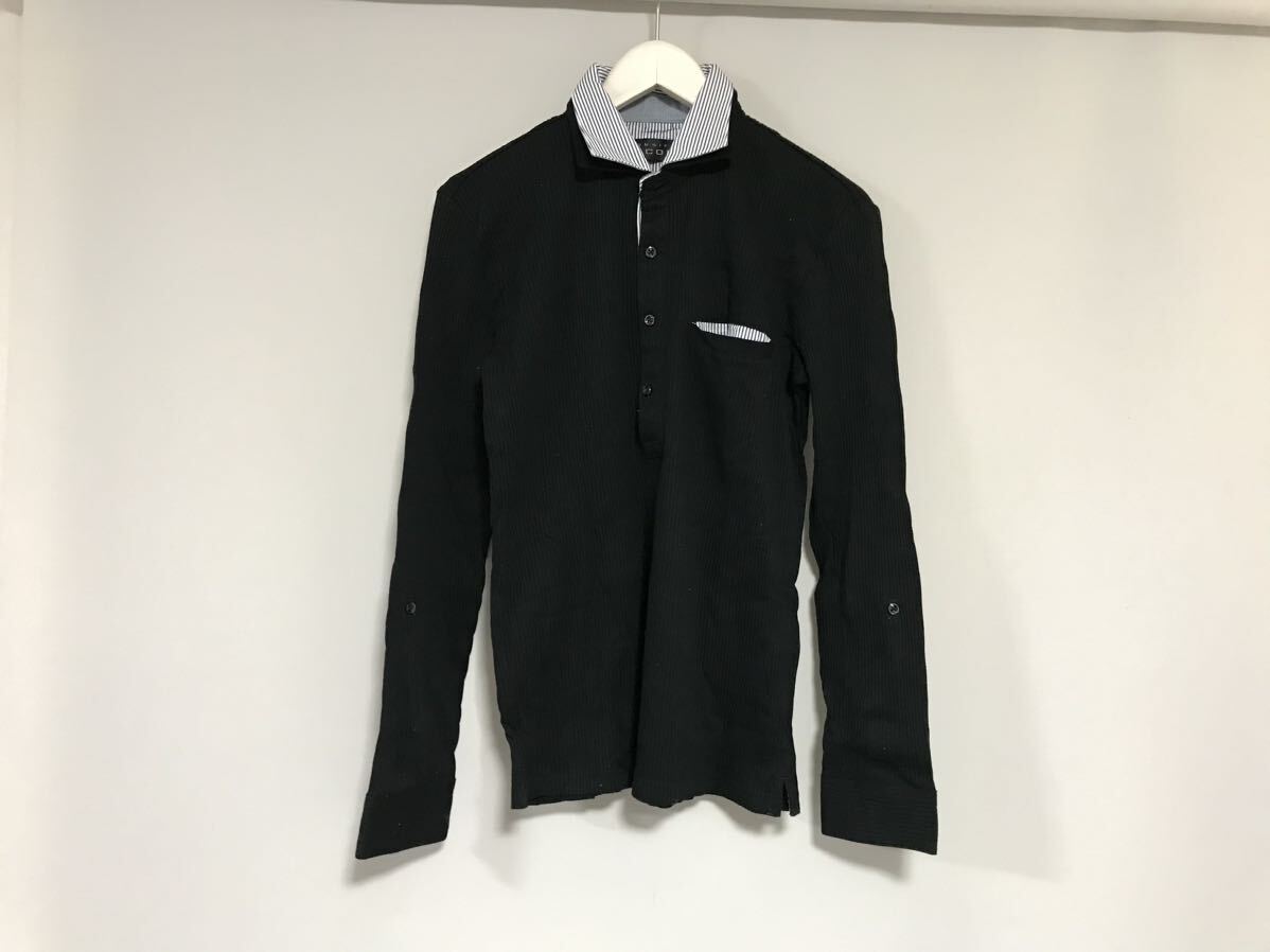 商品名:本物ムッシュニコルMONSIEUR NICOLEコットンシャツレイヤードドレス長袖ポロシャツメンズサーフアメカジビジネススーツ黒ブラック46M