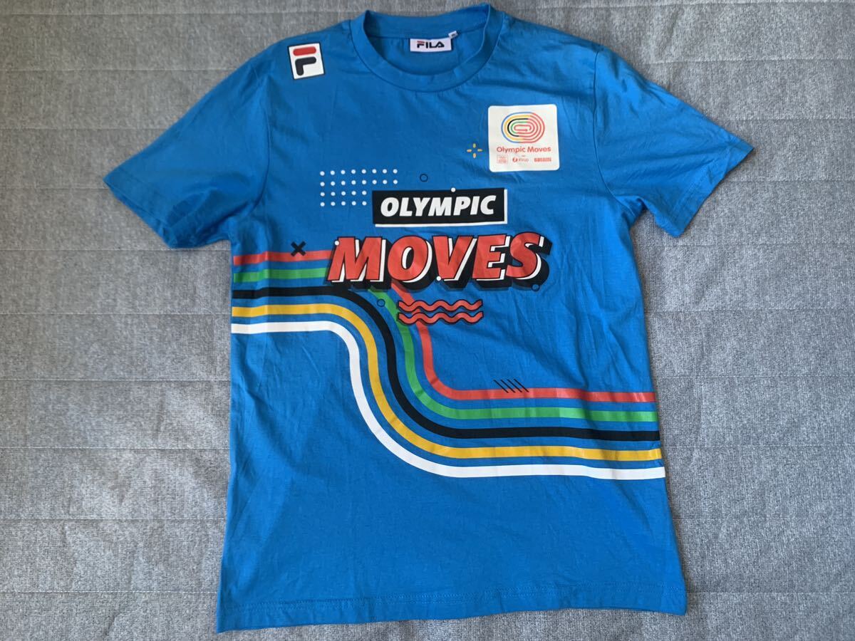 -CL512 FILA オリンピック Olympic Move Tシャツ ウィンテージ ブルー 古着 オランダ 招聘 メンズ M。多少の着用感あり。ヤブレなどの大きなダメージはありません。オランダで購入したビンテージ品です。