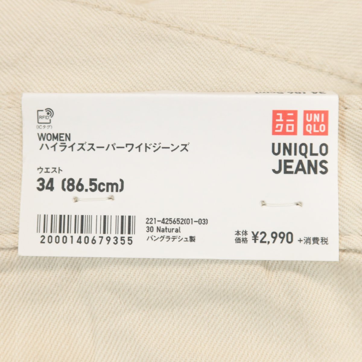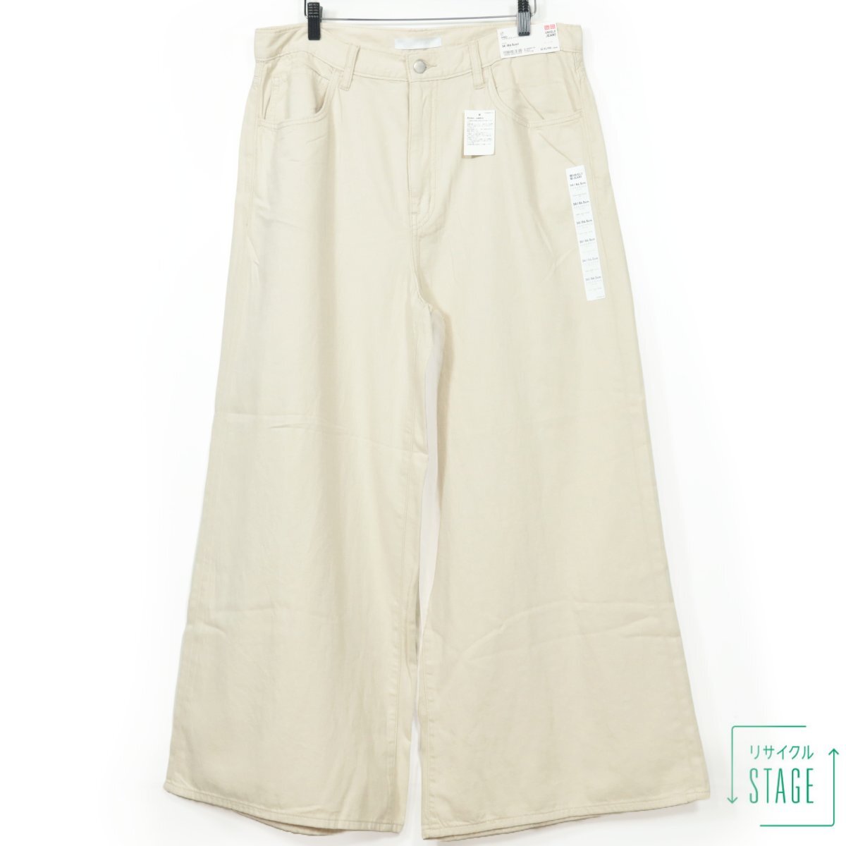 【新品タグ!定価2,990円】ユニクロ★ハイライズスーパーワイドジーンズ 大きいサイズ ウエスト34 オフ白系 z7596
