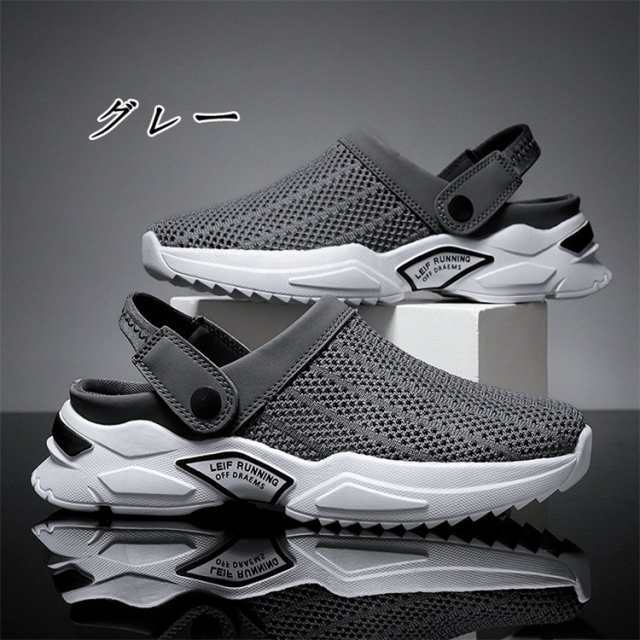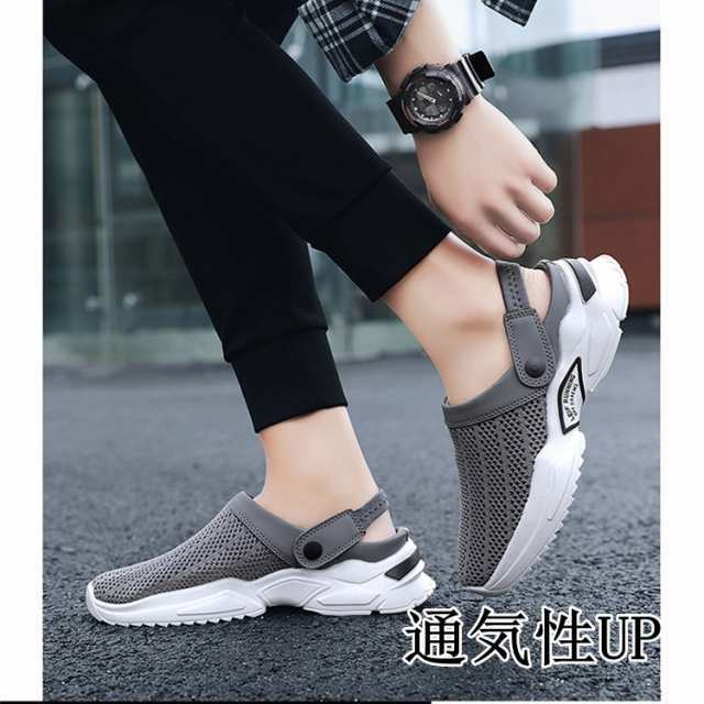 メンズサンダル おしゃれ ストラップ ビーチサンダル 海 衝撃吸収 速乾 水陸両用 メッシュサンダル 夏 グレー 26.5cm
