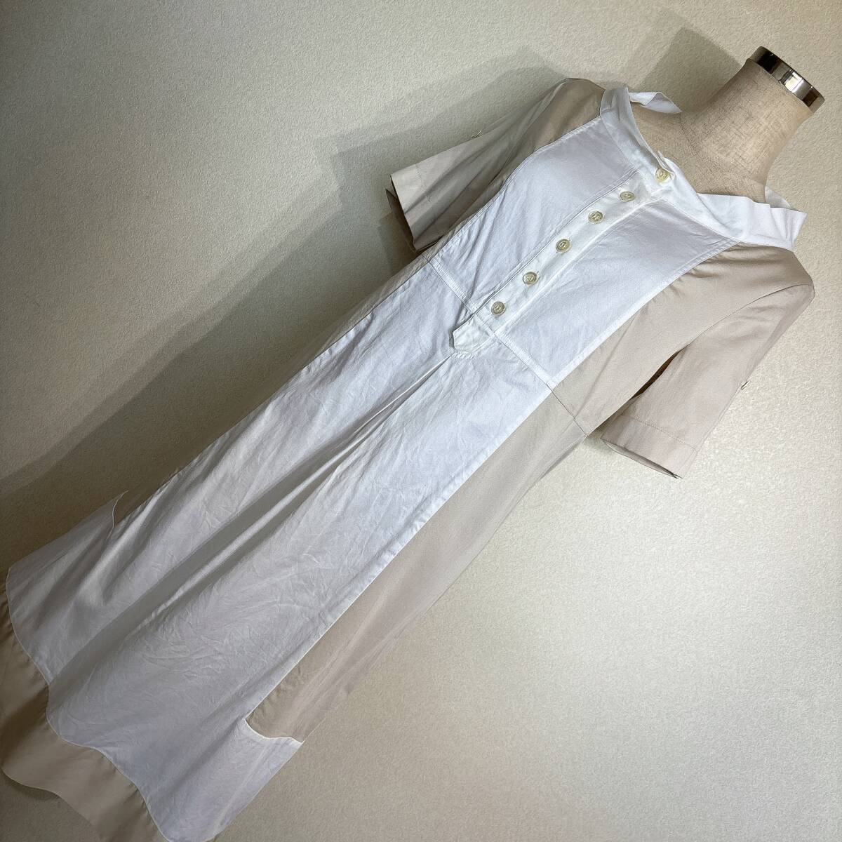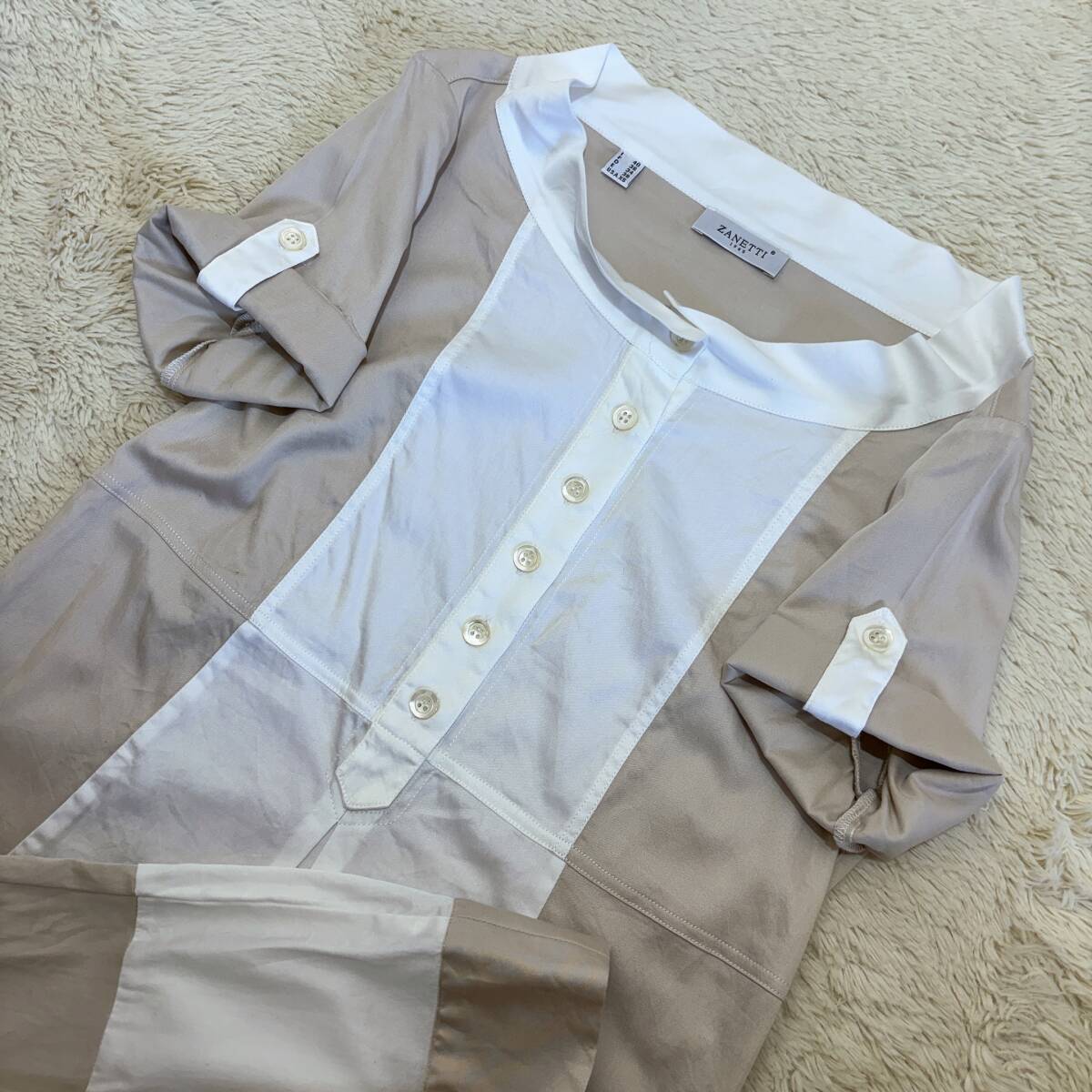 B860■ZANETTI1965ザネッティ★薄ベージュ&白★半袖&ロールワンピース■40 | ||||||||||||||||||||
