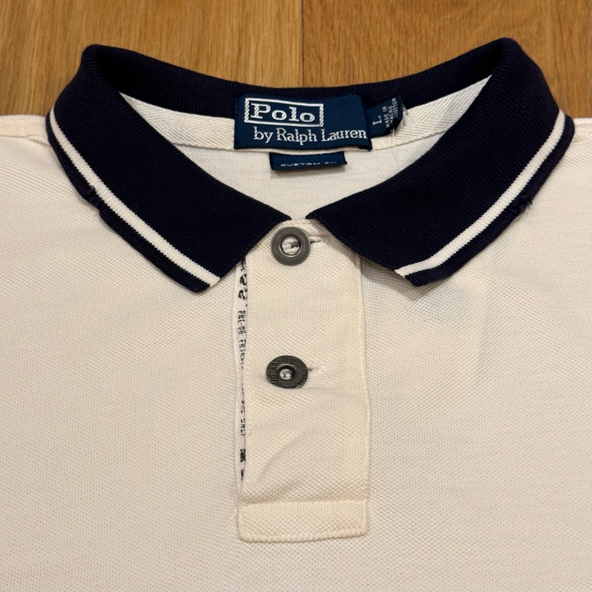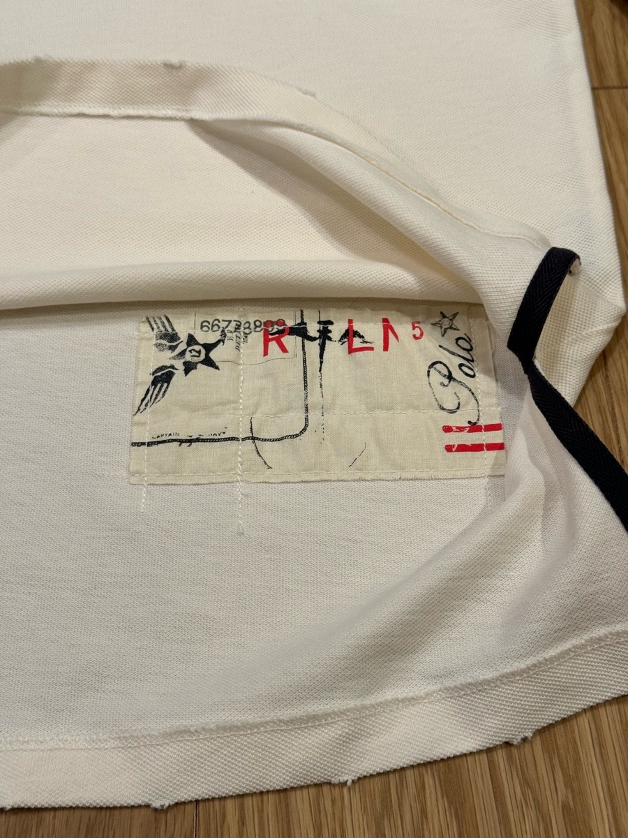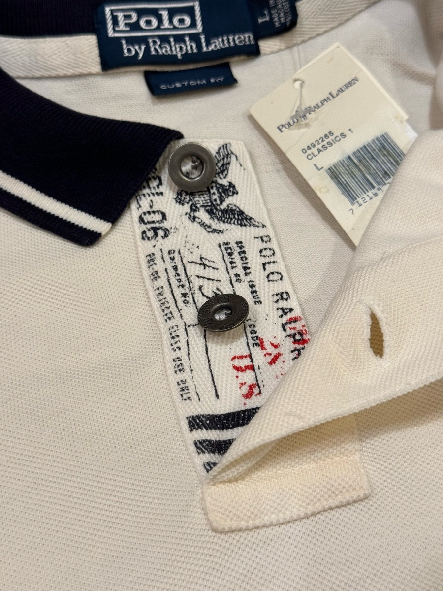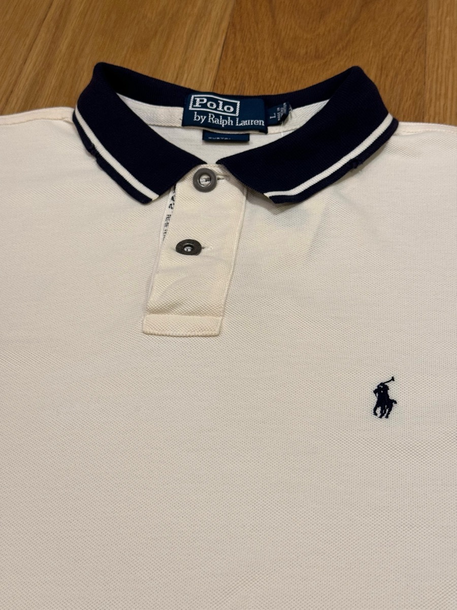 未使用 訳あり ラルフローレン ポロシャツ L ヴィンテージ ホワイト ネイビー デッドストック ポロ ralph lauren polo