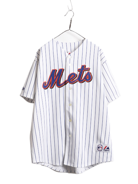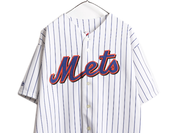 商品名 | MLB オフィシャル Majestic メッツ ベースボール シャツ メンズ XXL 程/ ユニフォーム ゲームシャツ メジャーリーグ 半袖シャツ ストライプ |