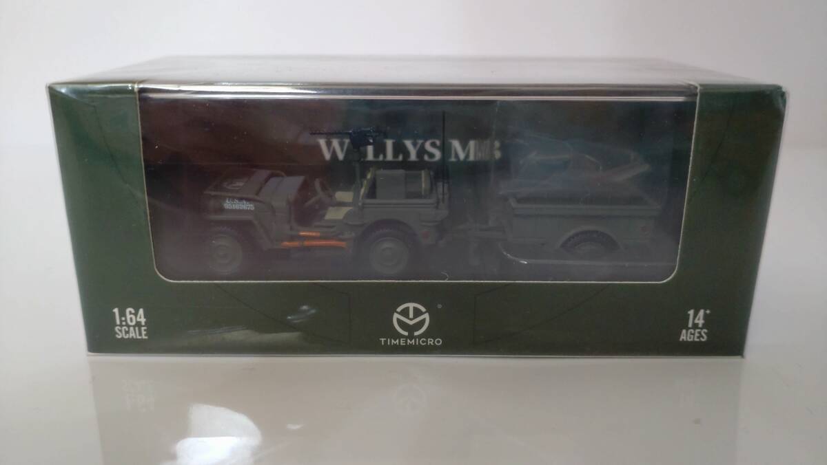 | <新品> TIMEMICRO ジープ ウィリス Jeep WILLYS MB トレーラー付き アーミーグリーン オイルドラム×1 弾薬箱x1 1/64サイズ | ||||||||||||||||||||