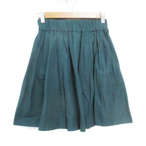 ジルスチュアート JILL STUART フレアスカート ギャザースカート ひざ丈 無地 0 XS 緑 グリーン /FF43 レディース