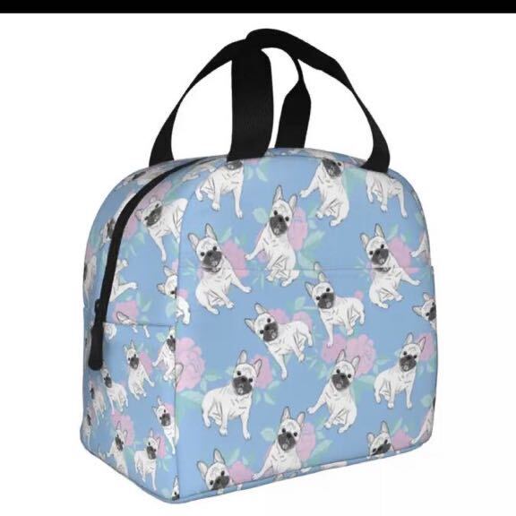 □大容量!!フレンチブルドッグ★保冷バッグ☆犬好き★わんちゃん♪お花★スカイブルー♪鞄☆お出かけグッズ★新品未使用品★送料無料◇
