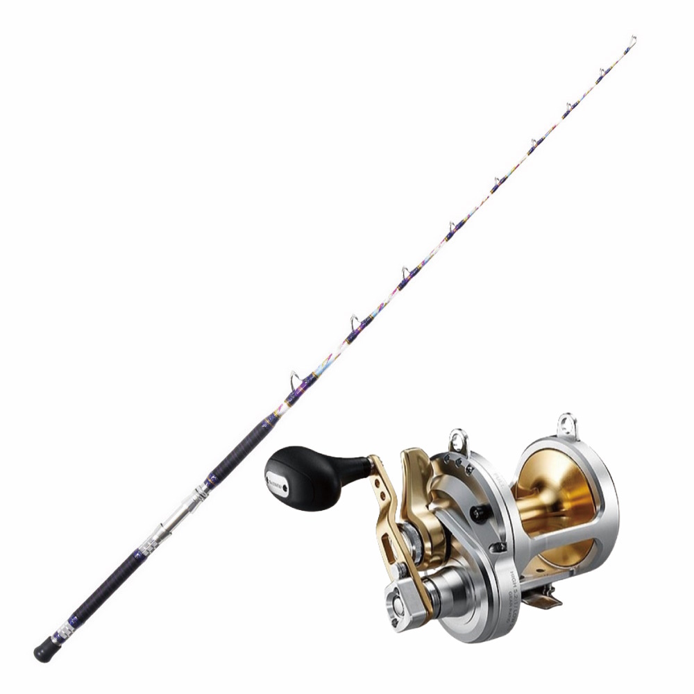 ホワイトベースの総糸巻きにカラフルな装飾を纏い新しく生まれ変わったゴクスペ Version-Sと、大物釣りに人気のシマノ 09TALICA 20II タリカのセットです。