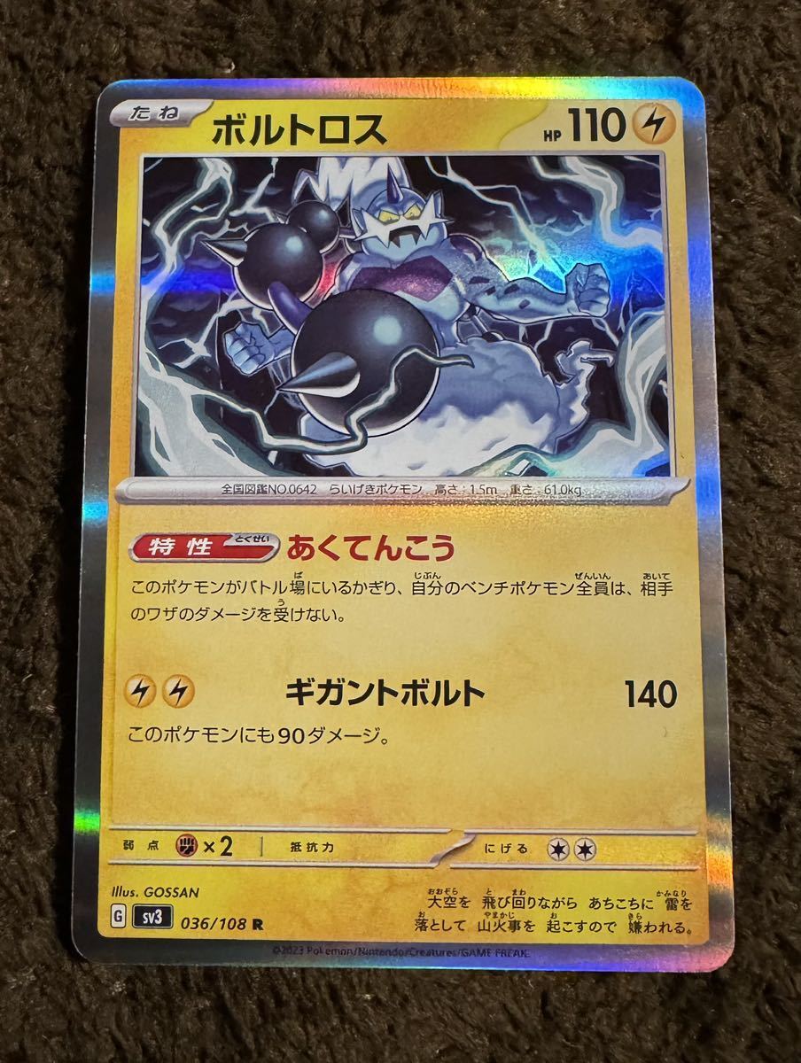ポケモンカード ボルトロス R(sv3 036/108)たね あくてんこう ギガントボルト 拡張パック 黒炎の支配者 1枚(在庫2枚)