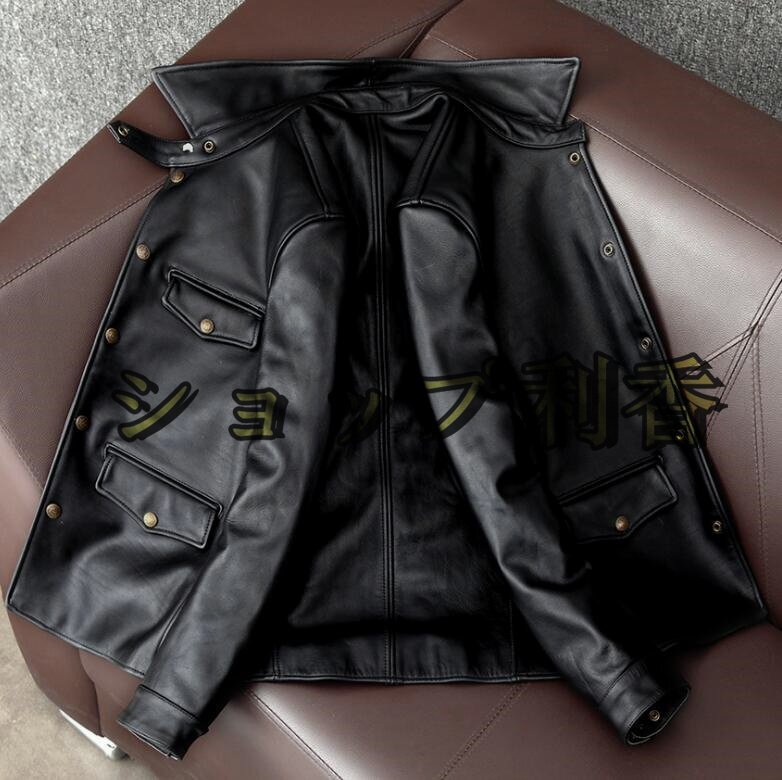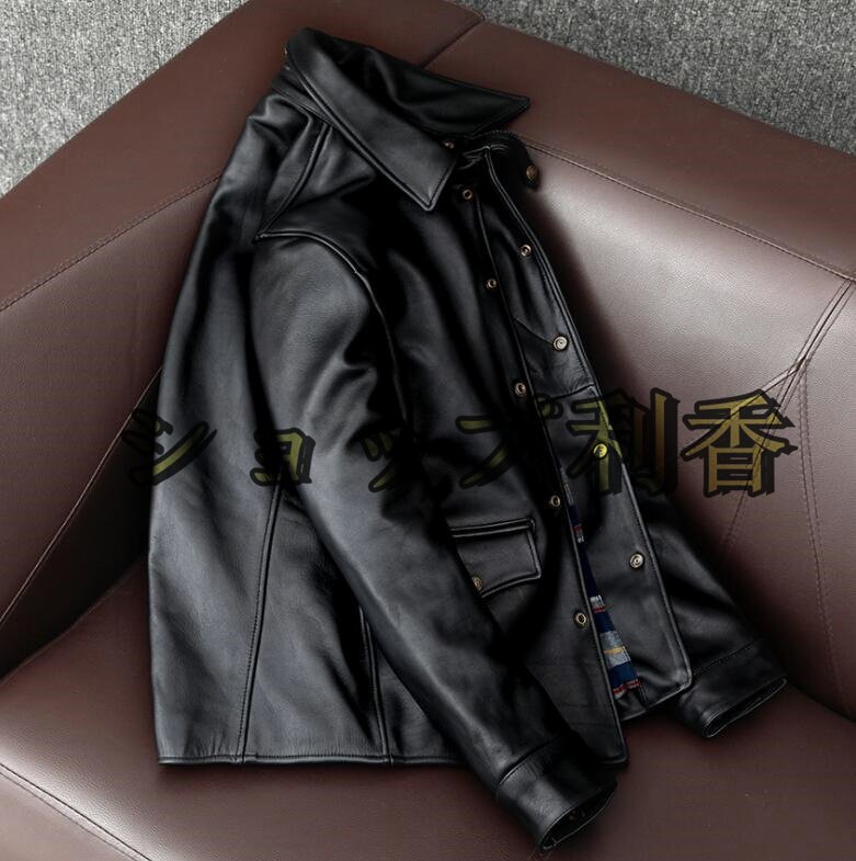 上品  レザージャケット 本革  馬革 茶芯ホースハイド ライダースジャケット  革ジャン S~5XL 秋冬 黒