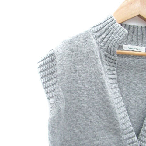 アフタヌーンティー Afternoon Tea ニットベスト スリットネック プルオーバー フレンチスリーブ グレー /HO31 ■MO レディース