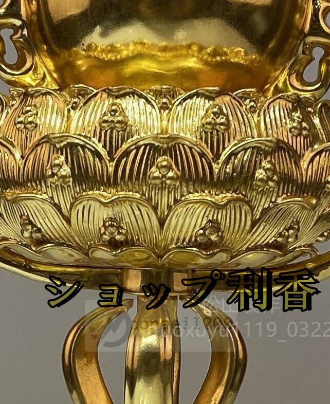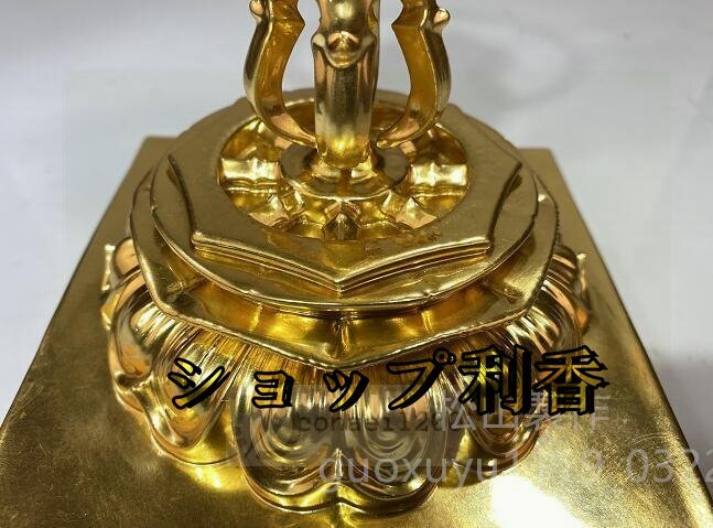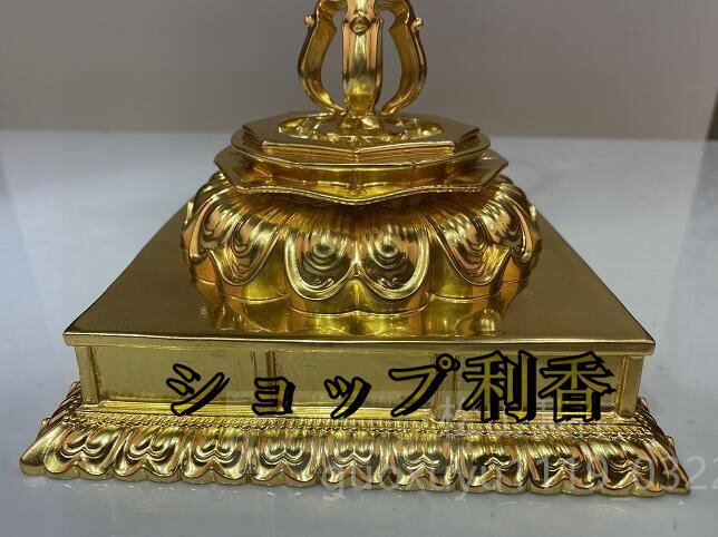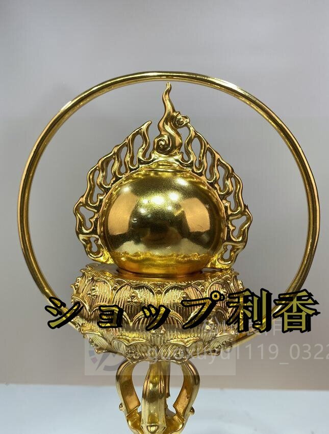 「密教法具 寺院用仏具」仏教美術 密観宝珠形舎利塔 火焔宝珠舎利塔 真鍮製 金箔貼り 希少 手作り 高さ32cm