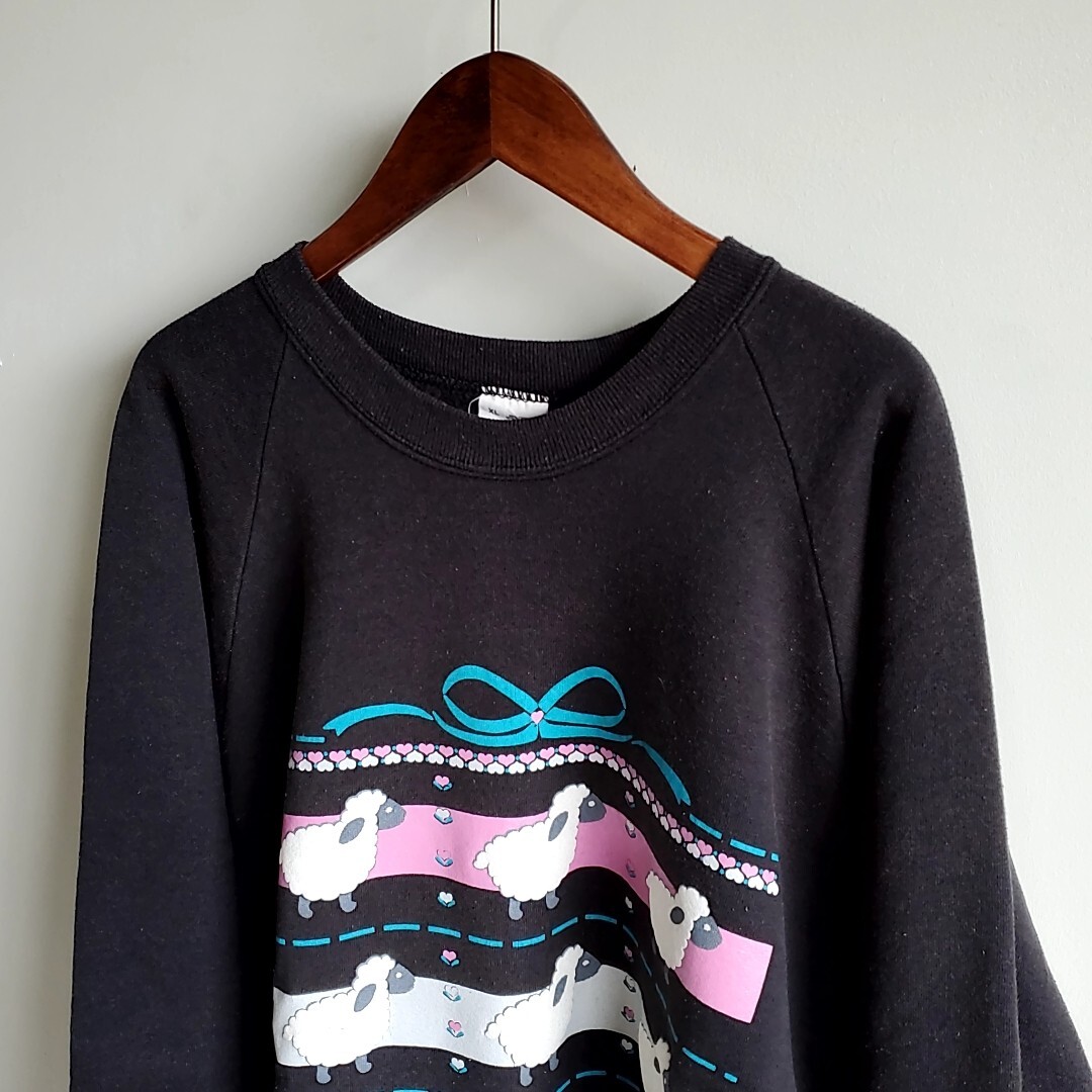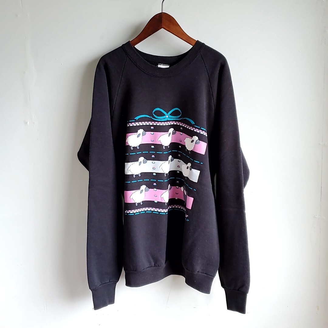 74◆80s USA製 FRUIT OF THE ROOM ラグラン袖 スウェット sizeXL 黒 ブラック vintage ヴィンテージ 古着 USED 中古 フルーツオブザルーム