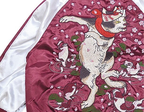 刺繍に定評のある古舗ブランド、華鳥風月の姉妹ブランド「朧」から「猫スカジャン/キッズ(9041894)」のご紹介です! 待望のキッズスカジャンが登場!! カジュアルなポリエステル生地を使用し、気軽にお楽しみ頂くことの出来るスカジャンを製作しました。 今回、モチーフの主役に採用されたのは【猫】柄。 | ||||||