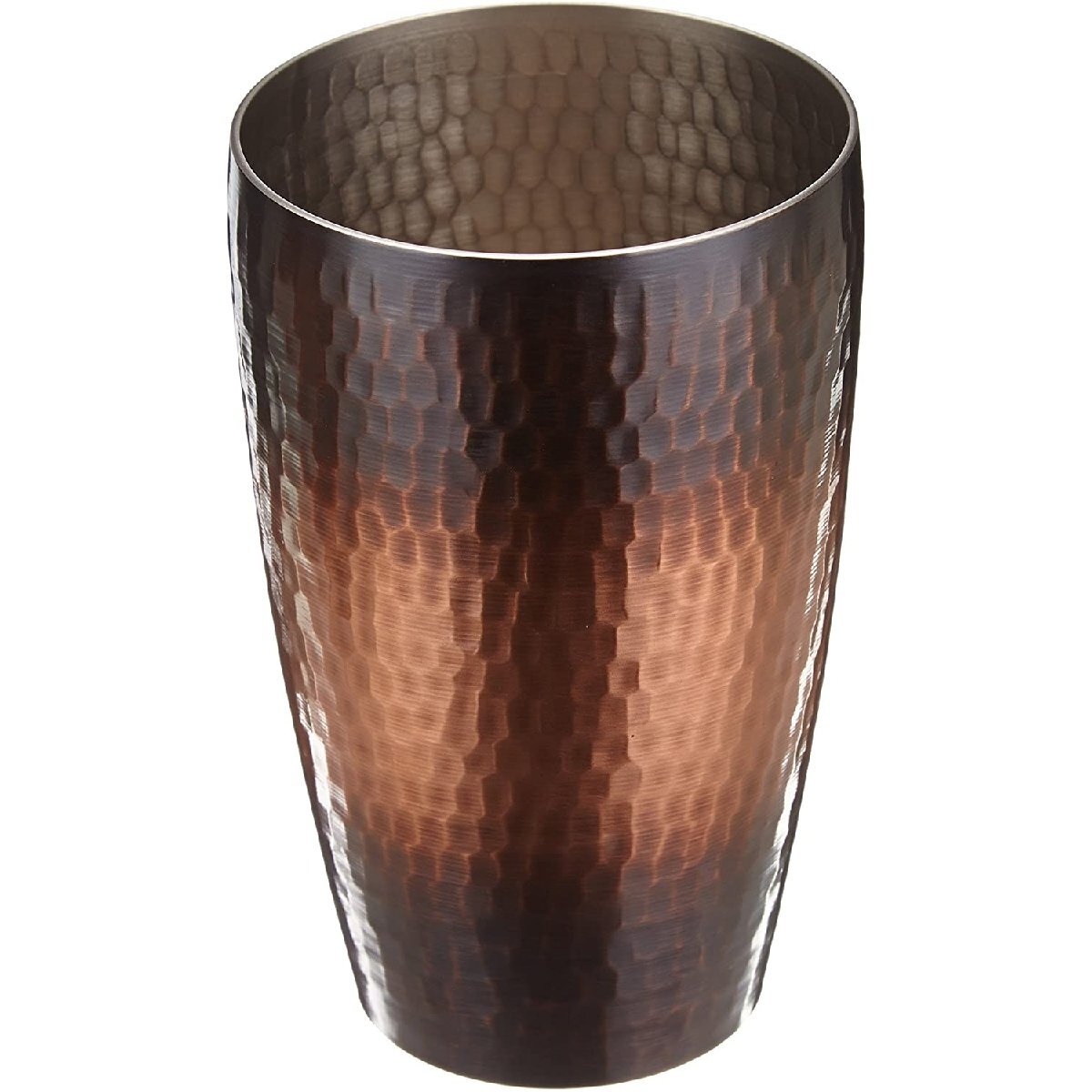 燕の伝統工芸技術、鎚起銅器の匠職人がひとつひとつ表面に目視着色技法で丹精込めて色付けした鎚目模様のタンブラーです。その色彩は熟練工が永い年月をかけ伝統工芸の技法を用い研究を重ねた仕上げ方法による逸品です。