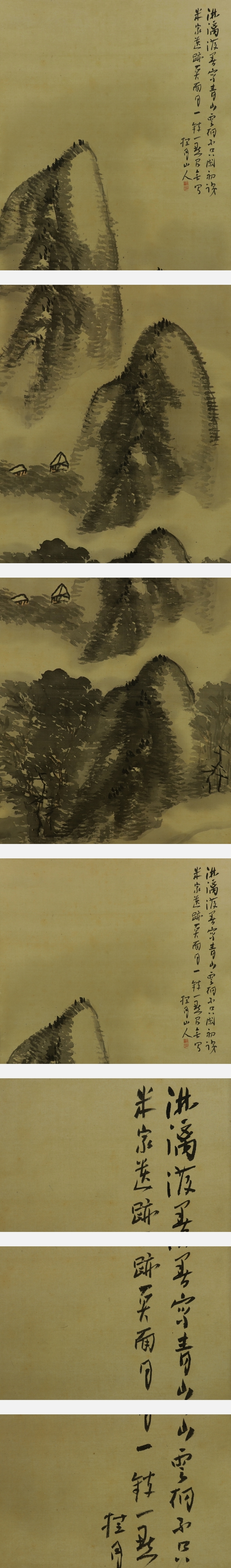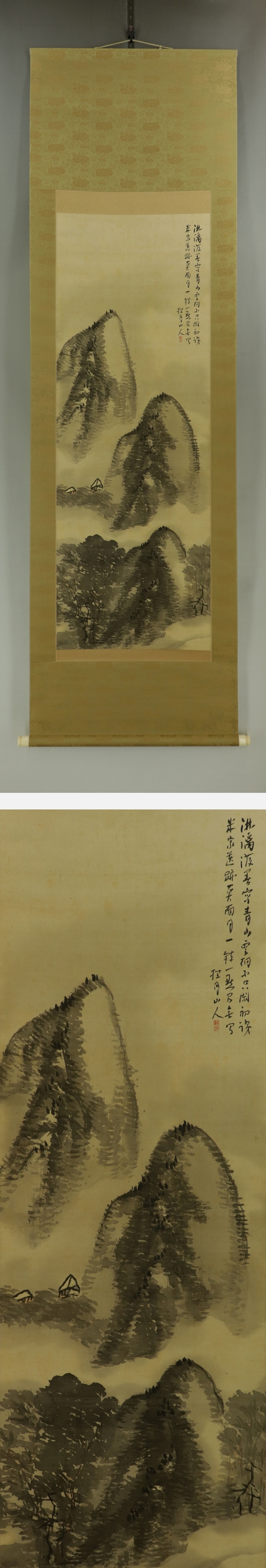 | №2402013【模写】松林桂月【米法山水】◆絹本◆合箱◆掛軸 | |