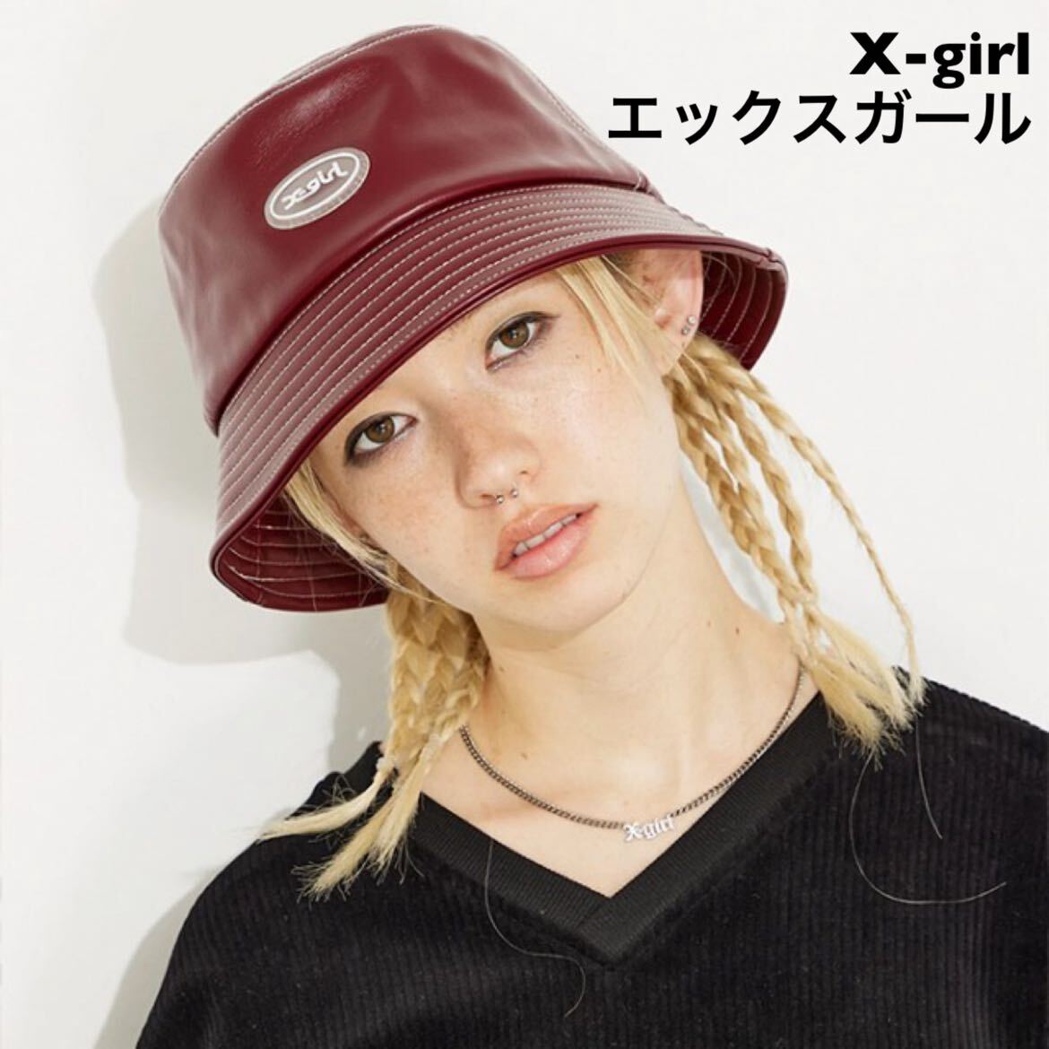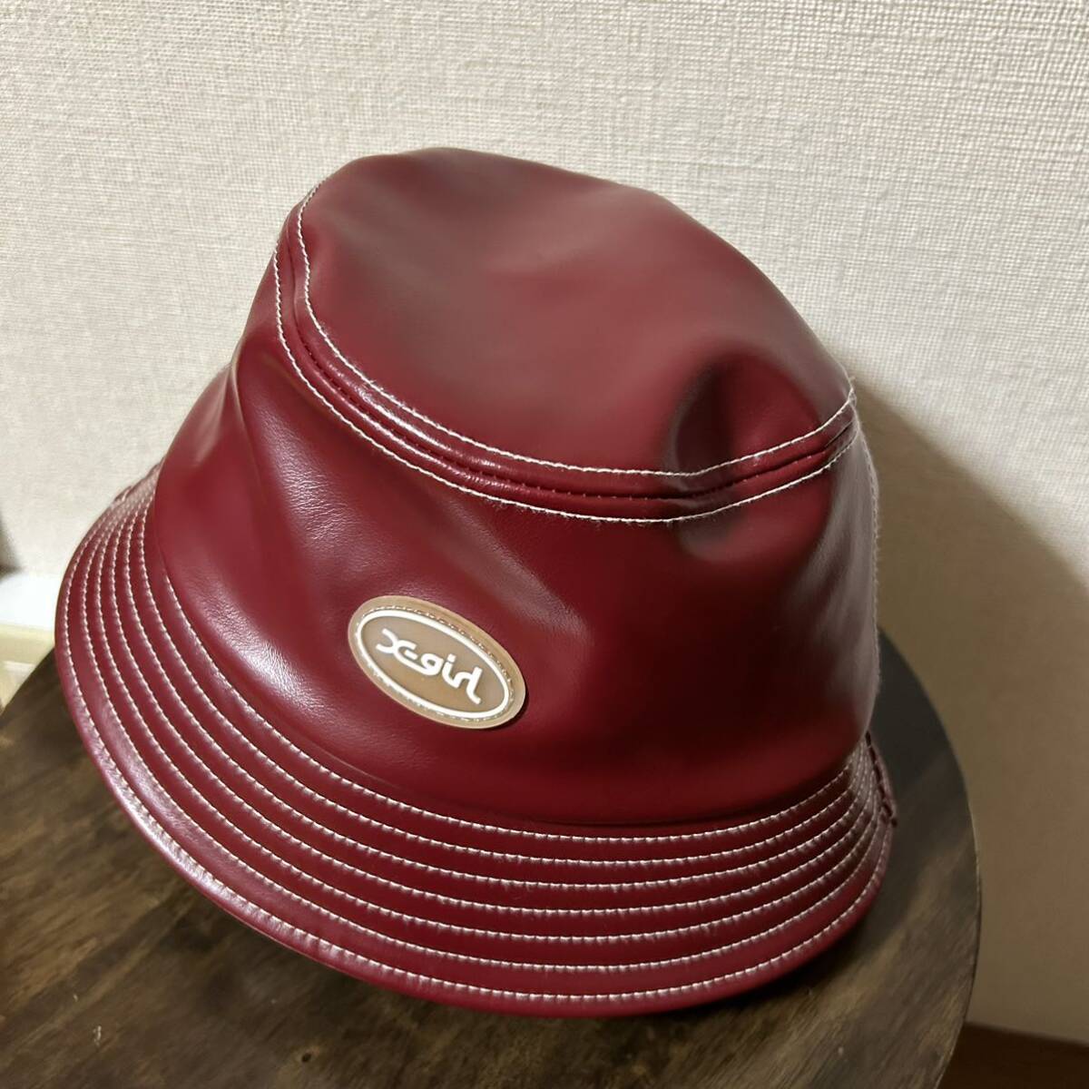 X-girl エックスガール FAUX LEATHER BUCKET HAT X-girl フェイクレザー バケット ハット バーガンディー