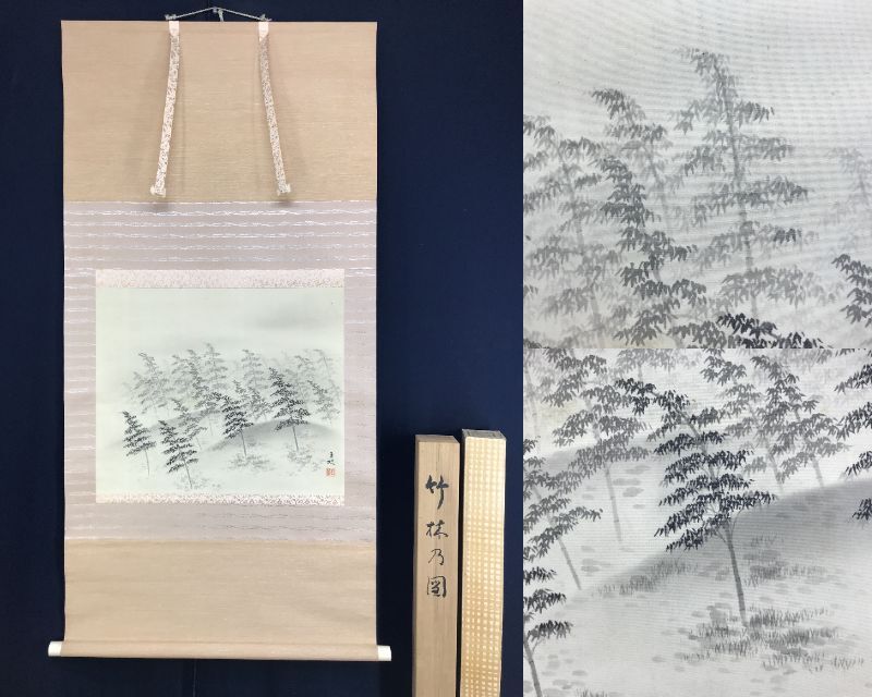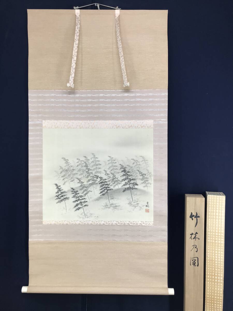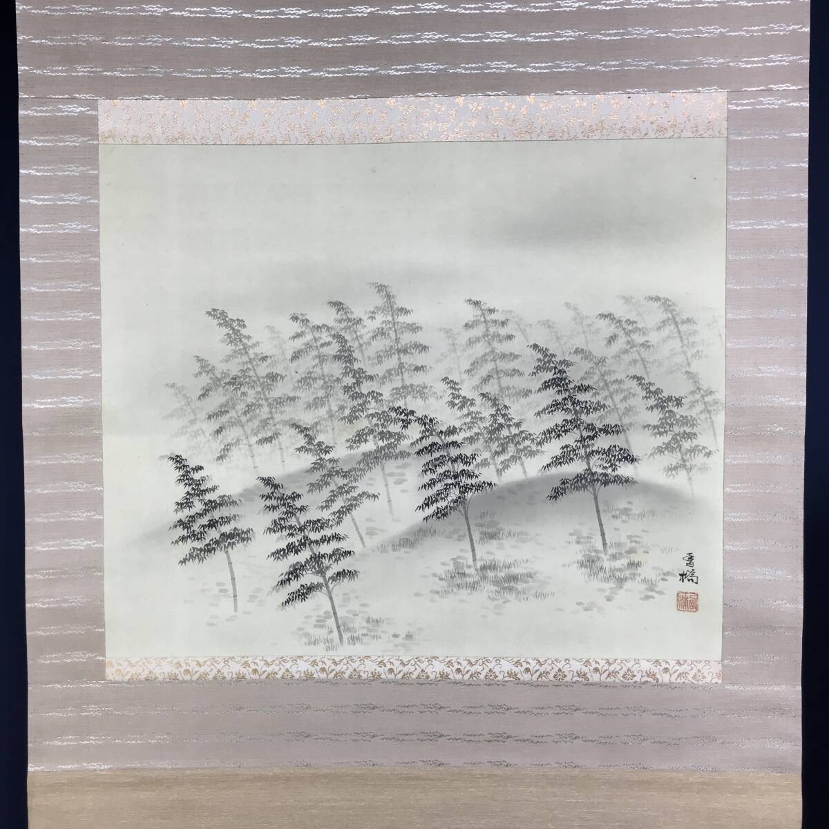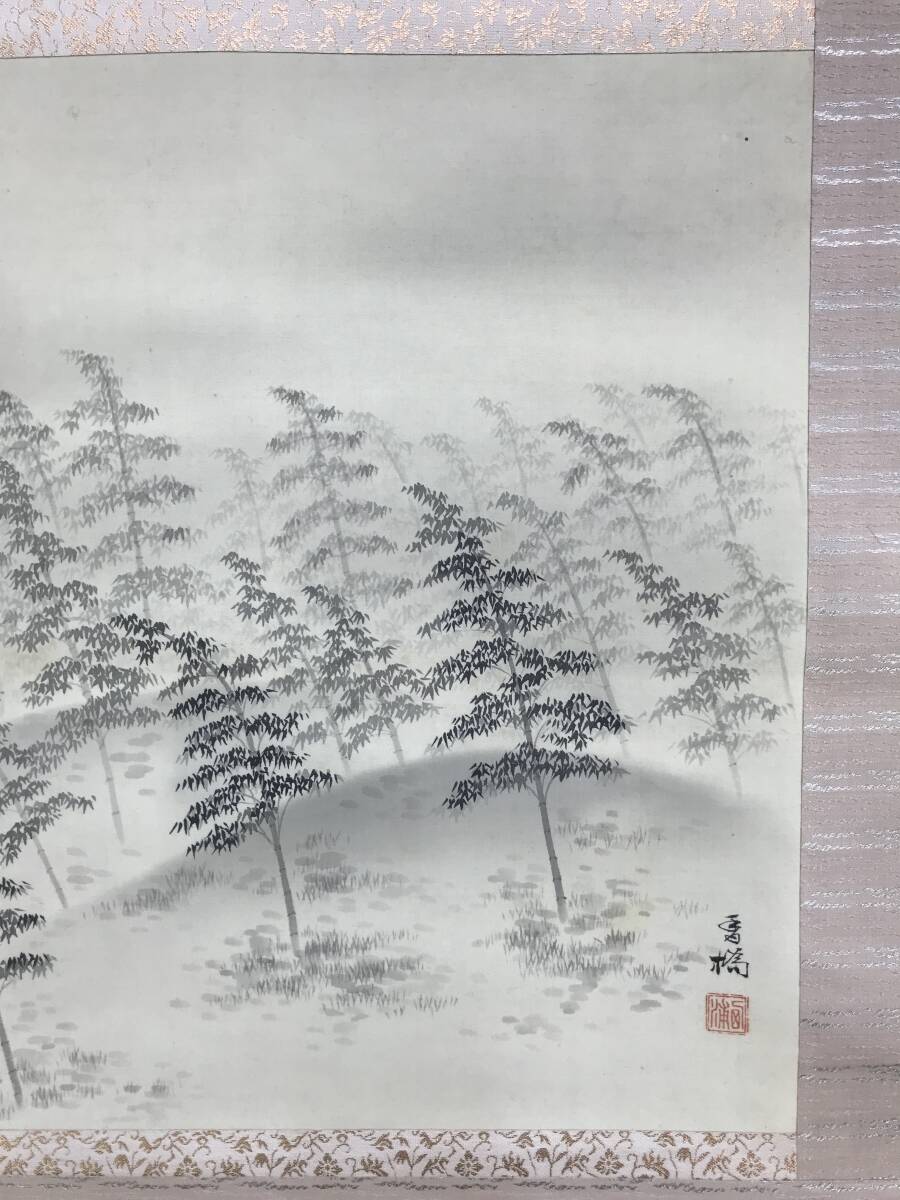 真作/西浦香橋/竹林乃図/山水図/竹図/横物/掛軸☆宝船☆AF-249