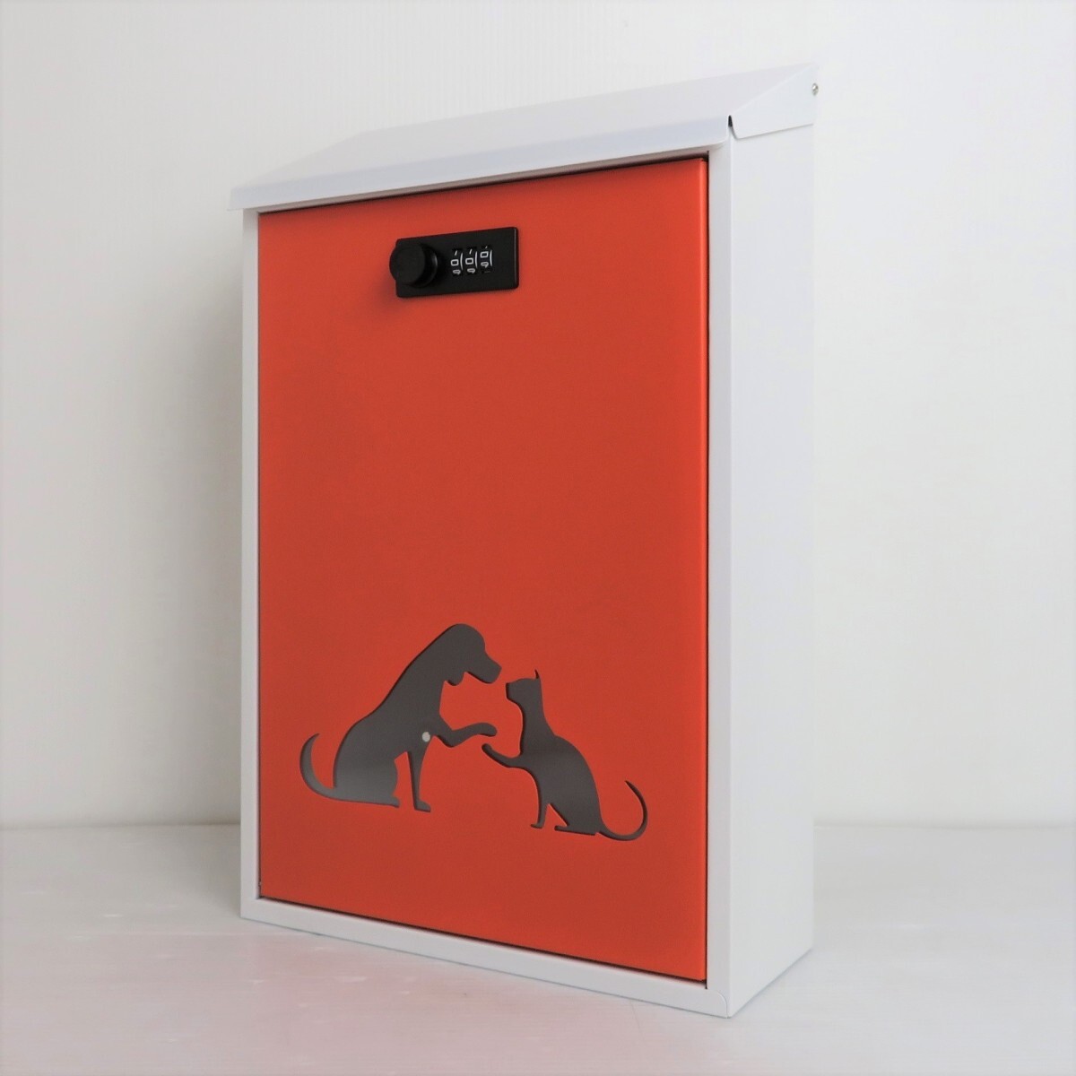 【特別セール】6月30日まで郵便ポスト郵便受けおしゃれ北欧メールボックス壁掛けダイヤル錠付「犬と猫の希望」オレンジ色ポストpm486