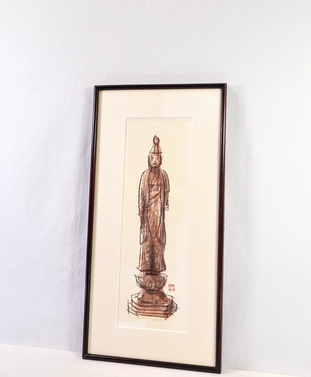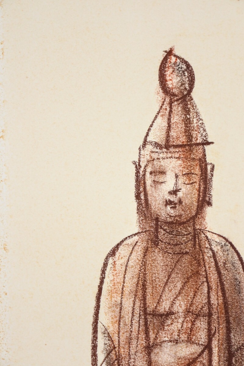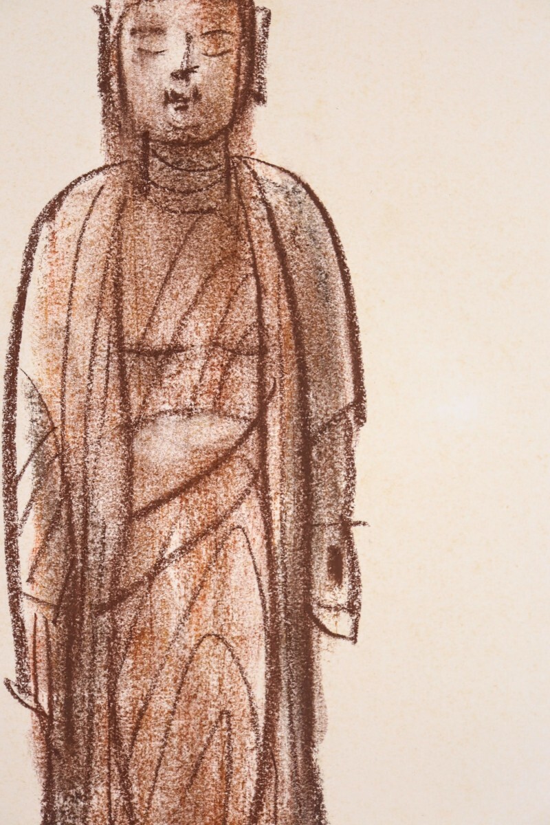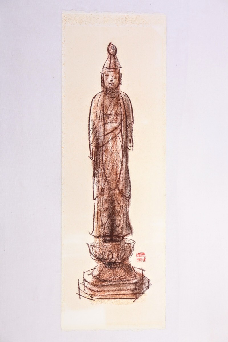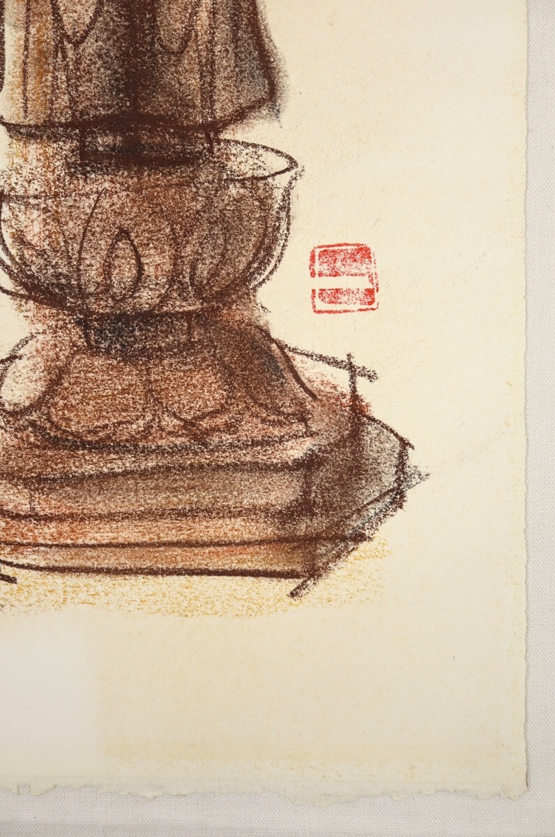 真作 吉岡一 パステル「梵天像」画寸19cm×57.5cm 大阪府出身 無所属 高の鬼才作家 濃厚な色彩と対象の内奥を捉えた作風で高く評価 8747