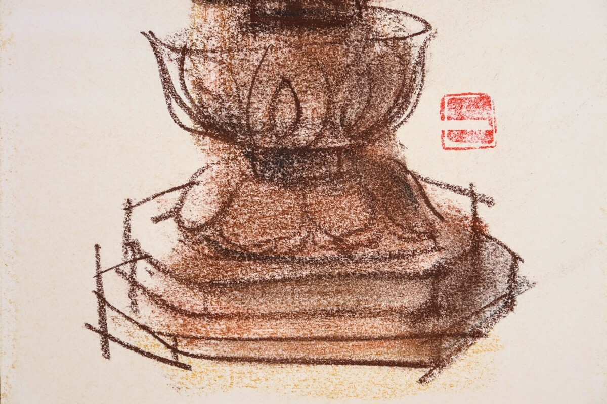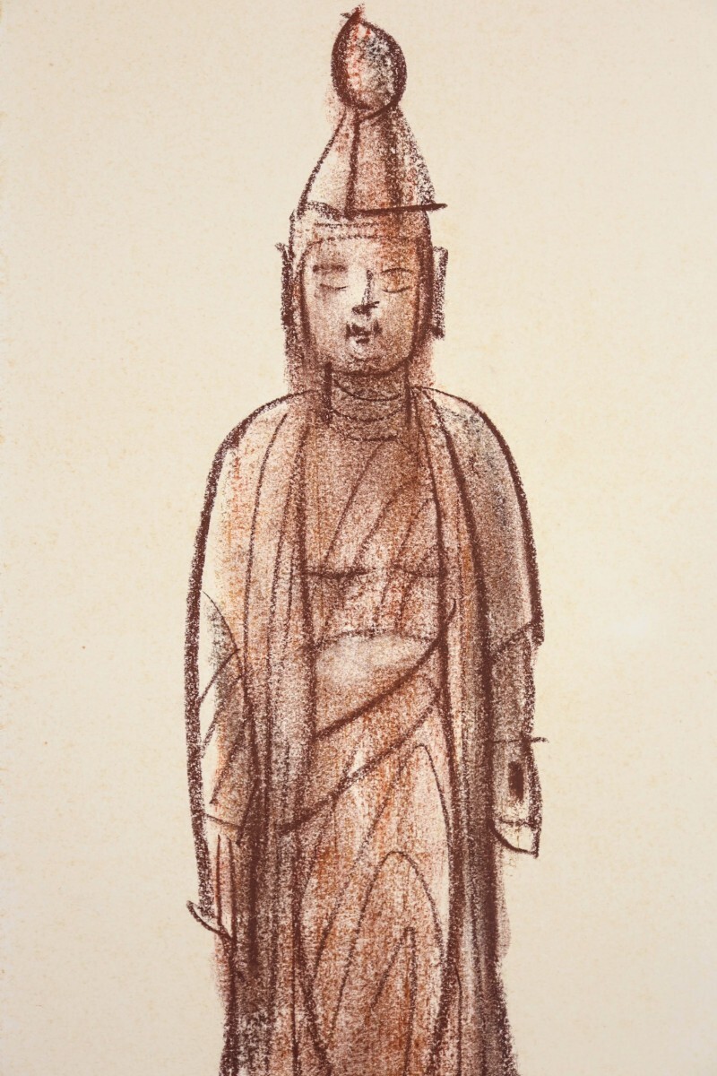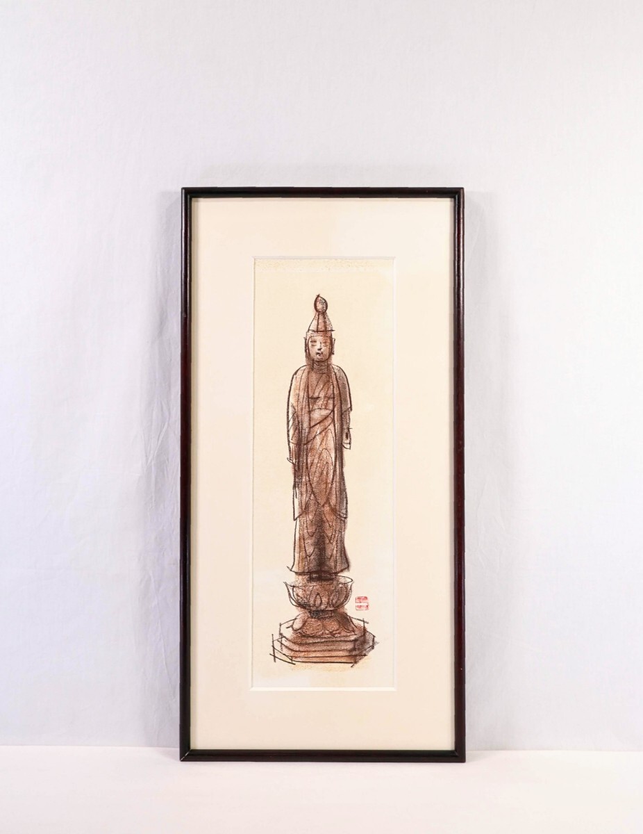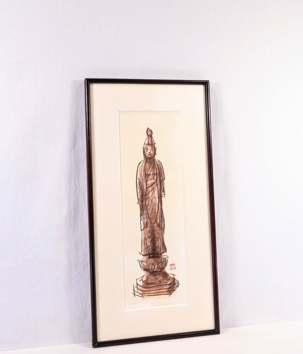 真作 吉岡一 パステル「梵天像」画寸19cm×57.5cm 大阪府出身 無所属 高の鬼才作家 濃厚な色彩と対象の内奥を捉えた作風で高く評価 8747